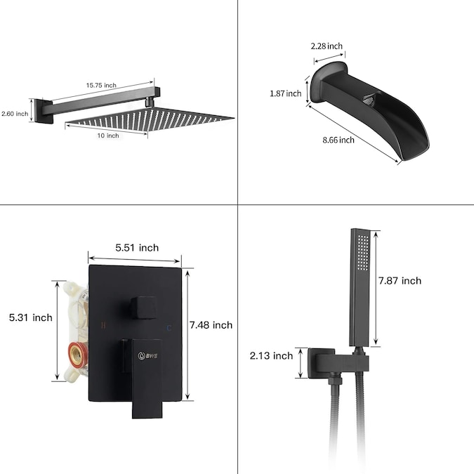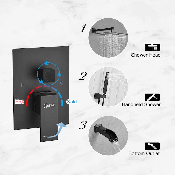 Charming and simplistic-BWE 10 inch square bathroom shower combo set faucet is a brilliant accessory for your bathroom,BWE always uses the best material to bring the best experience and quality to our customers,high air pressure technology inject the air into rain shower head to mix water with air offer more water pressure and giving you a pleasant shower.