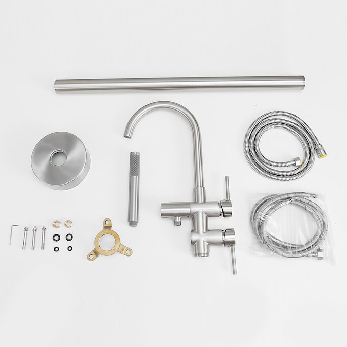 - Set include: stainless Steel hose x 2, brass tube x 1, decorate cover x 1, shower hose x 1, handheld shower x 1, brass faucet x 1, brass tripod base bolted x 1, screw and other accessories x 8, installation instruction x 1