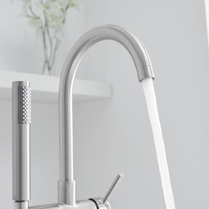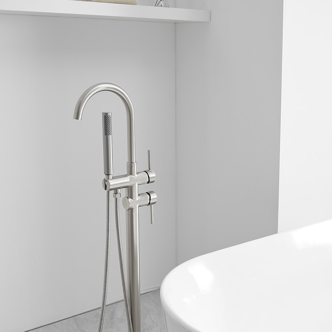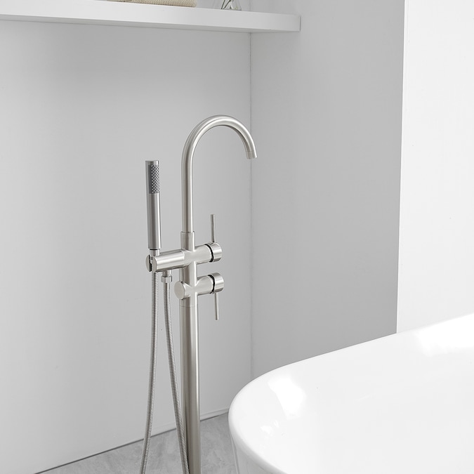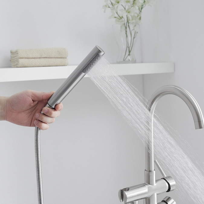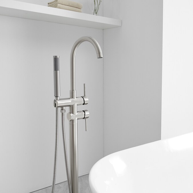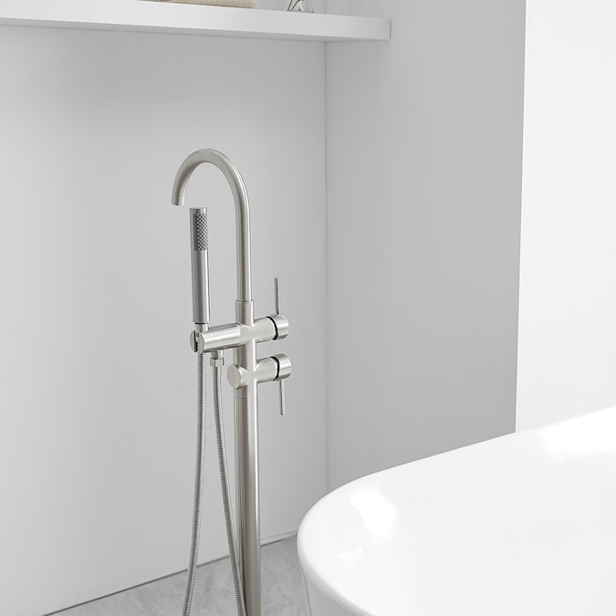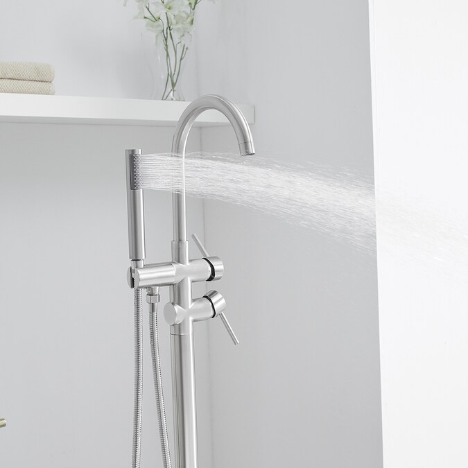 The BWE floor mounted tub filler faucet comes in premium brass construction with brushed nickel finish.pretty and practical,this bathtub faucet pairs well with nearly all modern bathroom designs and brings a fashion statement.And it comes with two functions,including a tub spout and a hand-held showerhead.BWE are aimed at offering our customer good service and good quality products.
