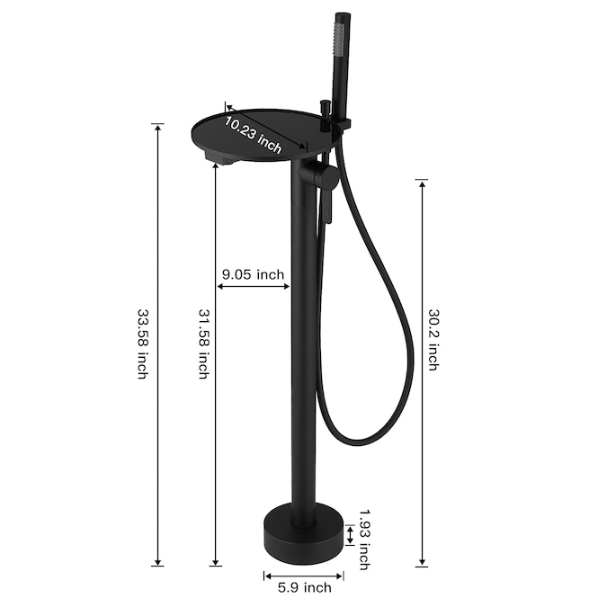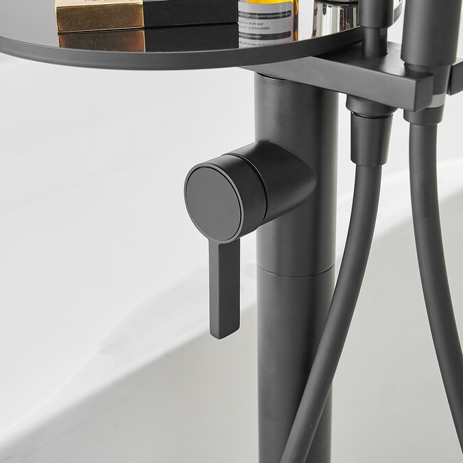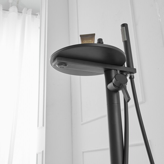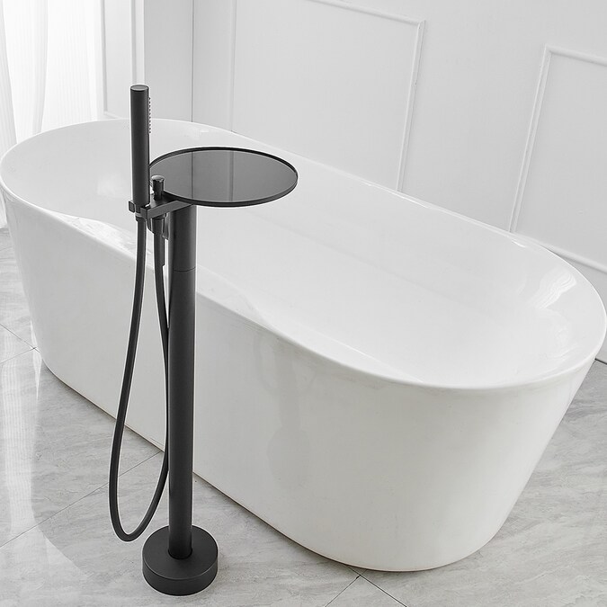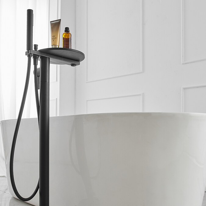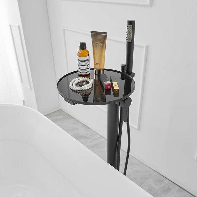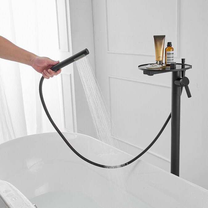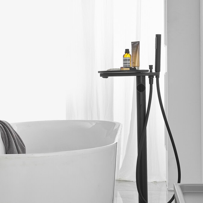 The BWE floor mounted tub filler faucet comes in premium brass construction with matte black finish.Pretty and practical,this bathtub faucet pairs well with nearly all modern bathroom designs and brings a fashion statement.And it comes with two functions and one storage tray,including a tub spout and a hand-held showerhead.BWE are aimed at offering our customer good service and good quality products.