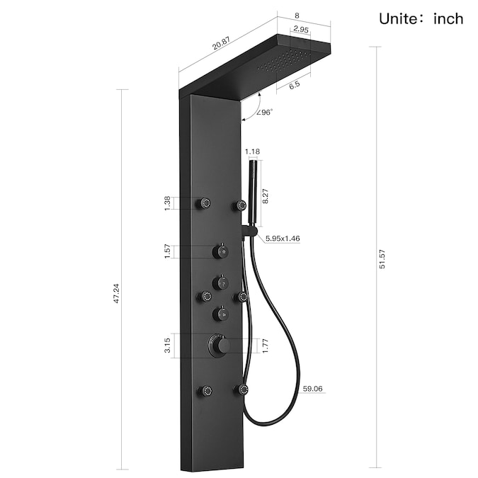 - Matte shower tower:the matte black finish makes this shower panel not dazzling