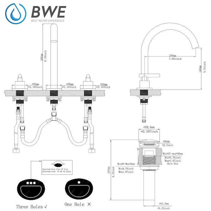 - Installation :two-handle widespread sink faucet for 8 inch – 16 inch adjustable centers, faucet handles can be installed at any distance between 8 inch to 16 inch for a more customized widespread installation