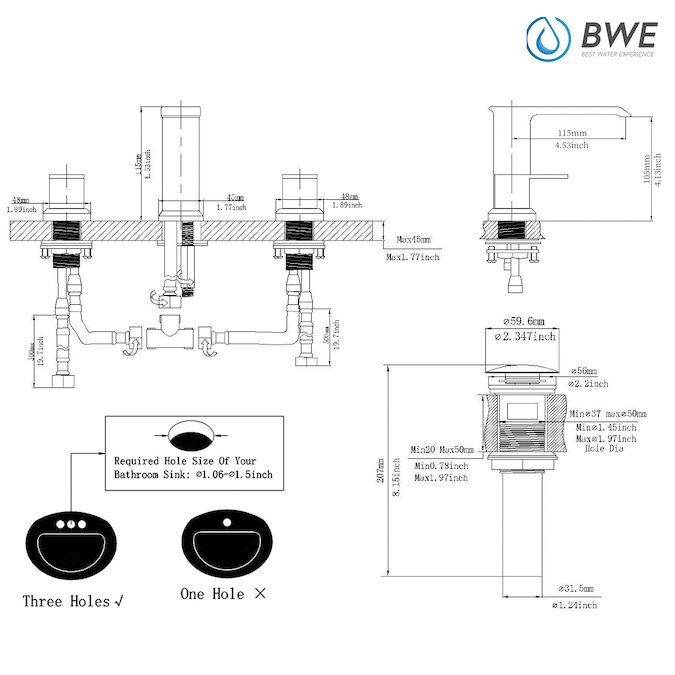 • Installation :two-handle widespread sink faucet for 8 inch – 16 inch adjustable centers, faucet handles can be installed at any distance between 8 inch to 16 inch for a more customized widespread installation
