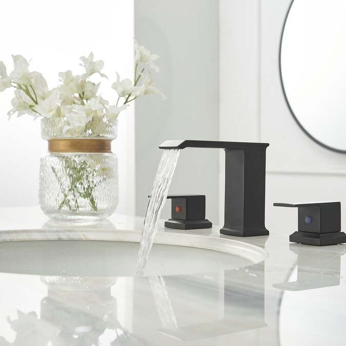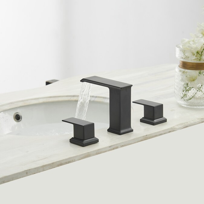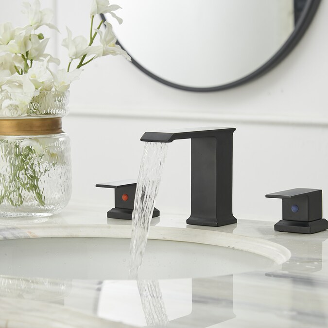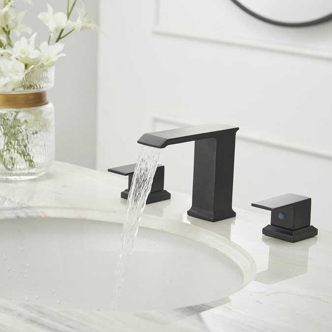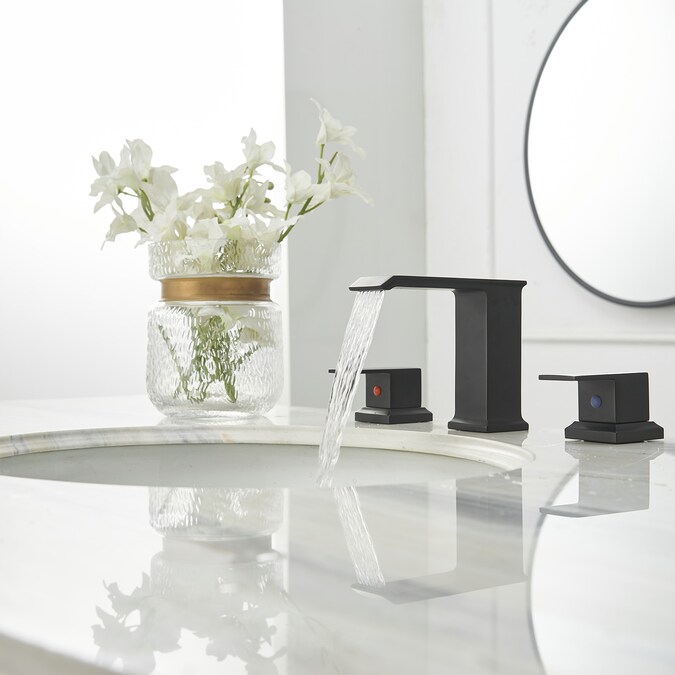 BWE Matte Black Widespread 2-Handle WaterSense Waterfall Bathroom Sink Faucet with Drain