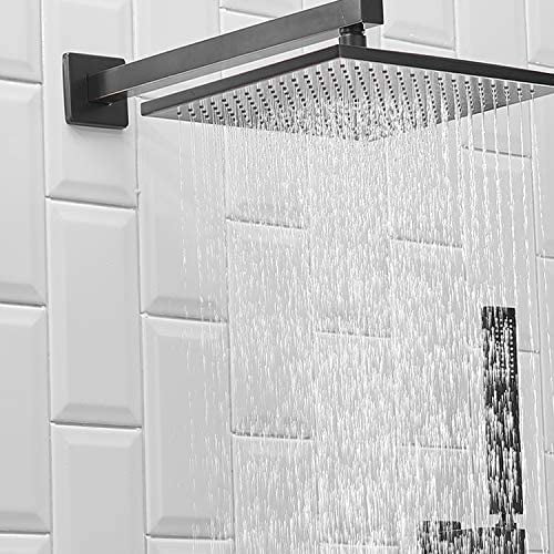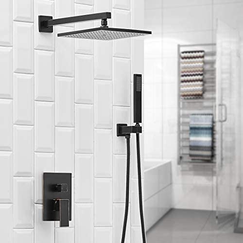 BWE Oil Rubbed Bronze Shower Faucet 10 Inch Square Luxury Rain Mixer Shower System Sets Complete 2-Functions Pressure Balancing Wall Mount Rainfall Rough-in Valve Body and Trim Included