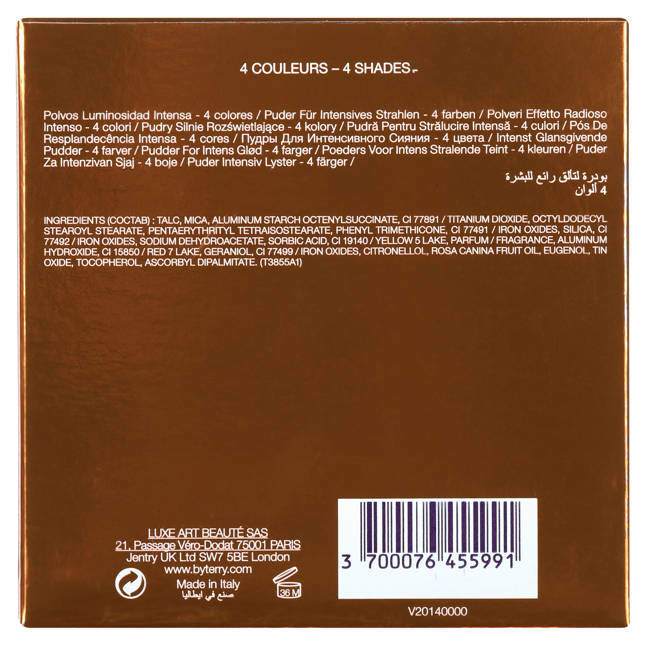 BEAUTYSPACE By Terry Brightening Cc Cheek Palette, N2 Beach Bomb, 4 Colors, It is a brightening powder, color corrector and cheek highlighter in one! Highlighter palette. Illuminating powder. Skincare infused formula. Enriched with rose extracts. If your complexion is looking a little lacklustre, the Brightening CC Palette is created to give your skin its glow back, correcting any dullness.Optical Glow technology and skincare benefits of rosehip oil minimize imperfections, intensify skin radiance, neutralize redness and create a flawless finish. UNIQUE FORMULA Special Optical Glow technology features soft-focus micro-spheres and color correcting pigments for a flawless finish, while light-reflecting prisms lift the complexion.