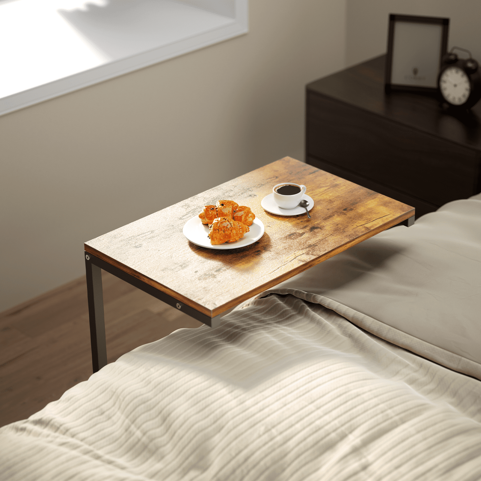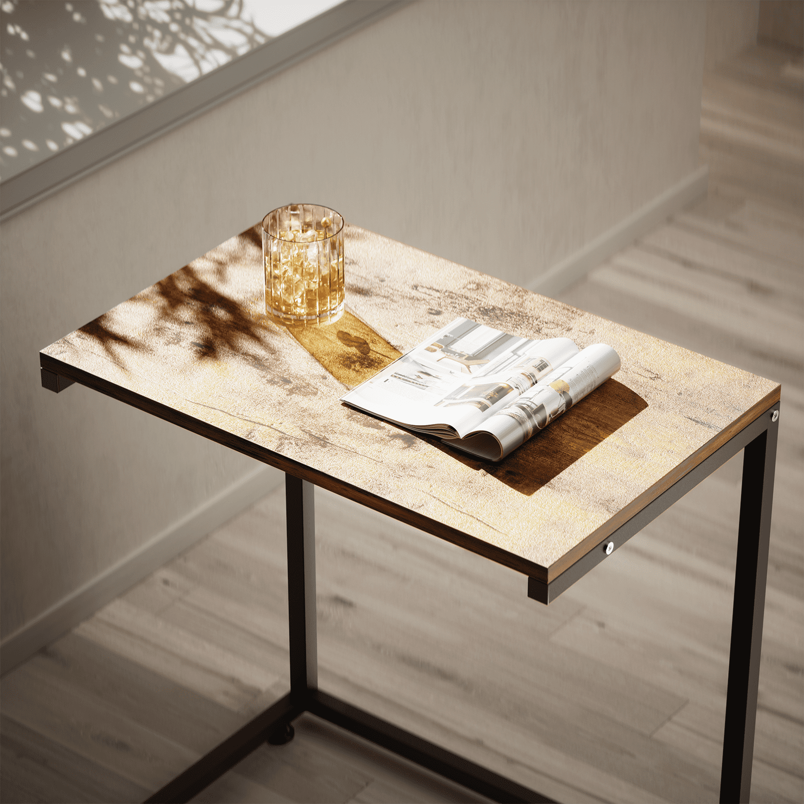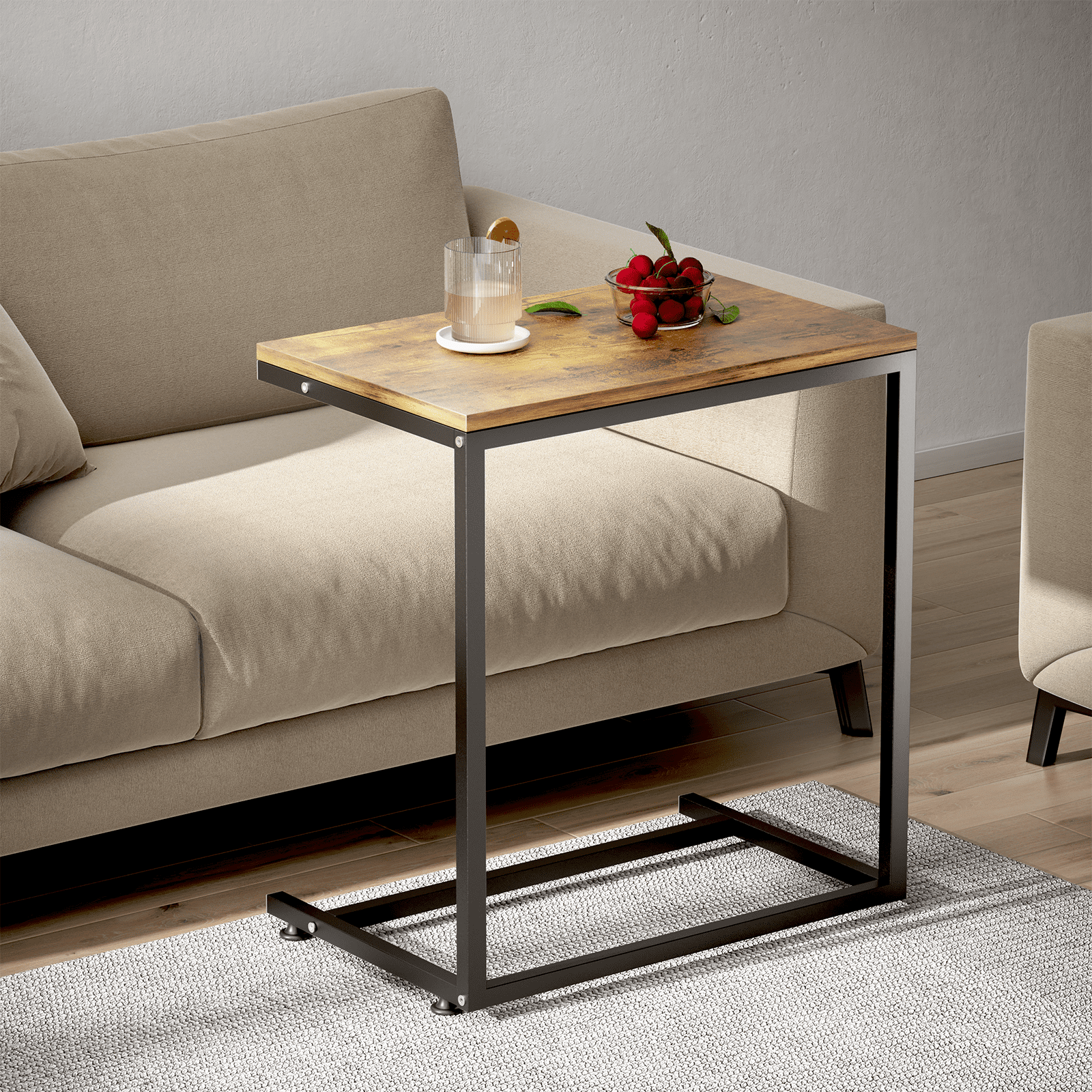 C Shaped End Table,Side Table TV Tray Table for Sofa,Couch Table for livingroom,Bedroom(Rustic Brown)