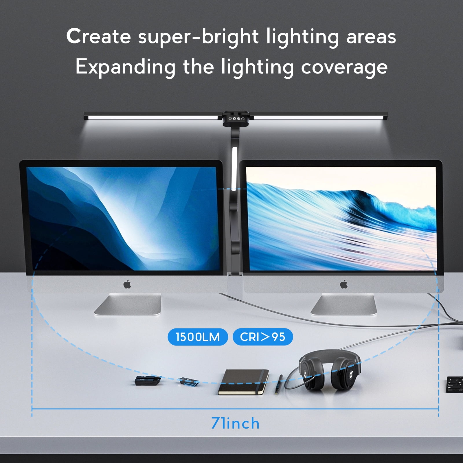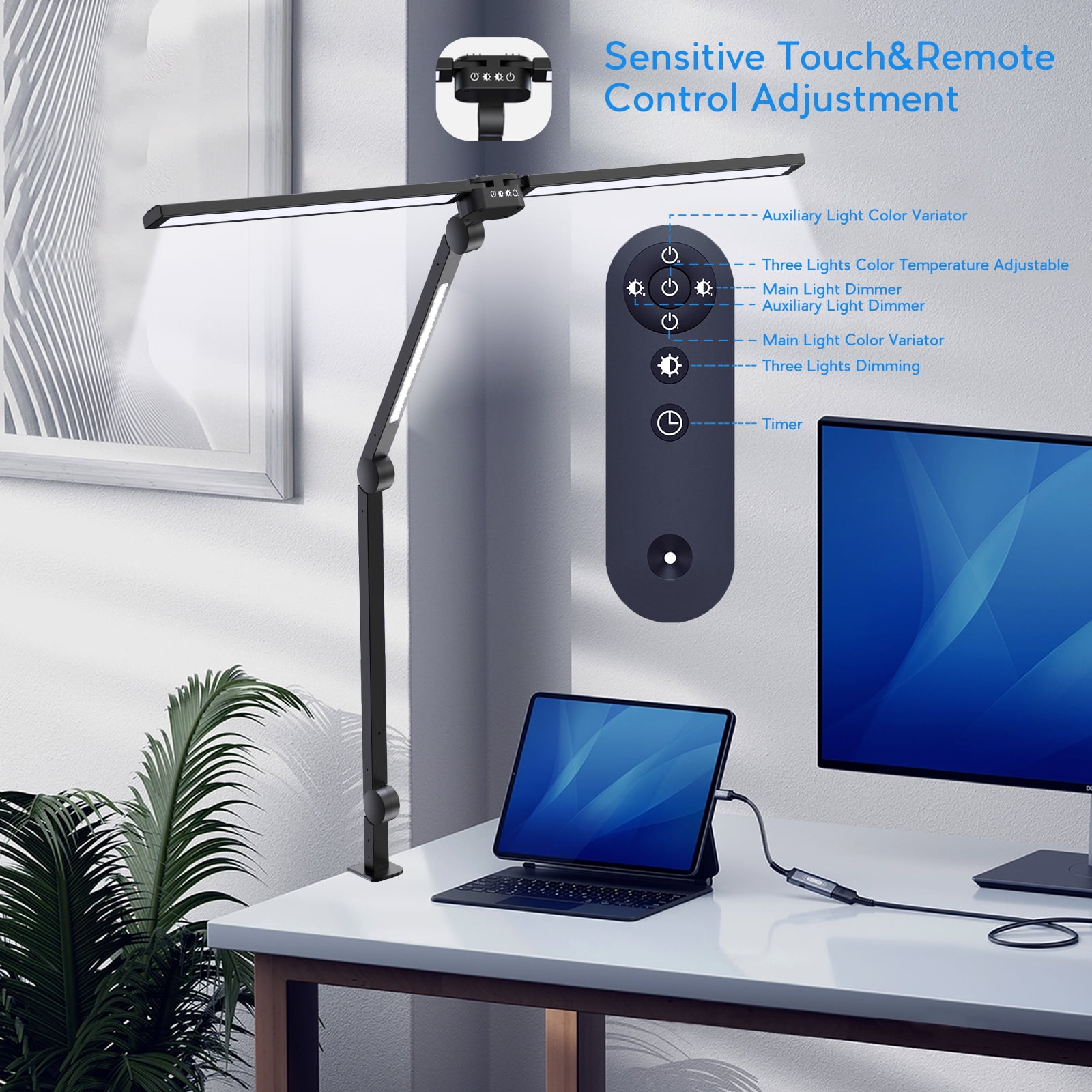 CAALOGT LED Desk Lamp, Dual Head 3-Light with Remote Control and Stepless Dimming