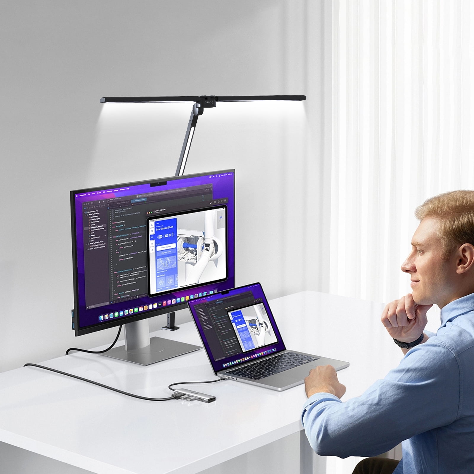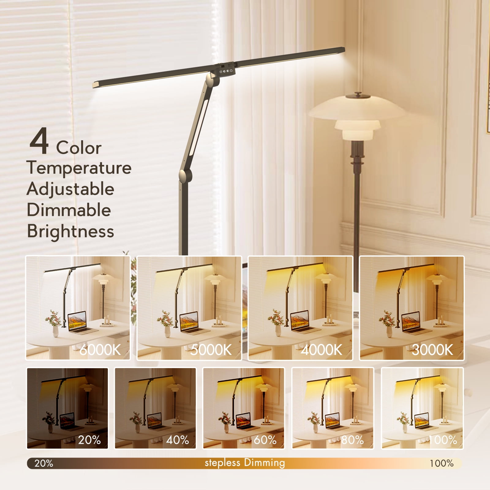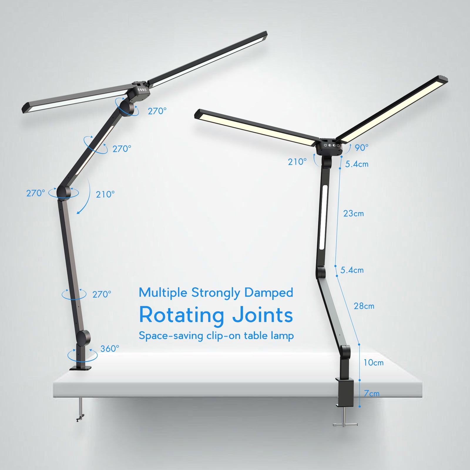 【Light Modes Easy Set Up】 – The LED desk lamp can easily switch between Stepless dimming and 4 color tempers (3000K-6000K) with buttons, covers the basic light preference most of people have without interference to screen. Long press the night light button on the remote control to adjust table lamp to the night light mode, eliminating the need for tedious adjustments. Different lights meet the needs of different scenes, suitable for you and your children to read, work, study, relax, etc. 【Three Light & Dual Manipulate】 – Swing arm desk lamp is quite versatile, brightest 1500 lux, CRI>95, world perfect for your workbench, sufficient for reading, working, or crafting and consumes 24W. The brightness and temperature adjusted by remote and led lamp arm touch sensitive, remote includes both the brightest and dimmest settings, for reading and bedtime. (remote range up to 49 Ft-obstacles do not affect). No flicker, no glare, it does not irritate your sensitive eyes. 【Adjustability & Versatility】 – CAALOGT architect desk lamp has 5 rotatable body, you can rotate individual sections to various degrees to meet your lighting needs. The 3 lighted portions can be controlled individually and rotated 270°, the base can be rotated 360°, joints all move freely and stay exactly where you set them without drooping. The desk lamp can be clipped to various scenes such as desktops, bookshelves, sofa sideboards, shelves, and bedheads. 【Metal Clip】 – Small footprint of metal clips, which supports the max thickness of the desktop up to 2.4″. Please insert completely into the tabletop, tighten it, and keep the desk top and bottom flat. The desk light body is all made of high quality aluminum with good heat dissipation, which can extend the service life of the desk lamp by more than 50000 hours. 【Timing Memory Function & Customer Service】 – You can set the delay off 0.5/1/2H before bedtime, not necessary to worry about getting out of the warm bed to turn off the light. Memory function can keep the last setting of desk light mode you used and turned it on for the next time use. Desk lamp is easy to assemble, well under 5 mins from box to desk, and comes with plug, so no worrying about having to supply a suitable power source. 12 Months warranty and online service solve any problems for.