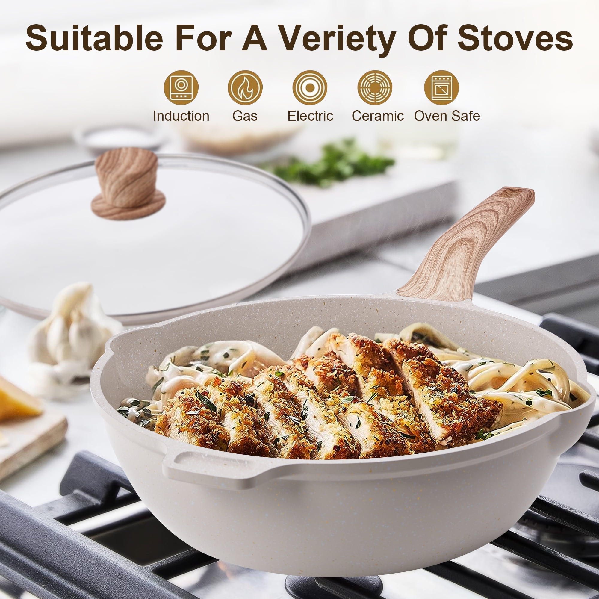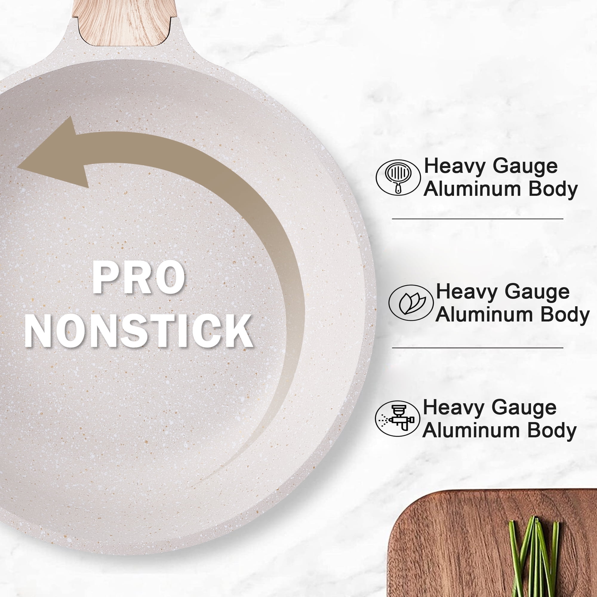 Durable granite stone coating for long-lasting performance Nonstick surface for easy food release and quick cleaning Comfortable handles for easy grip and maneuverability