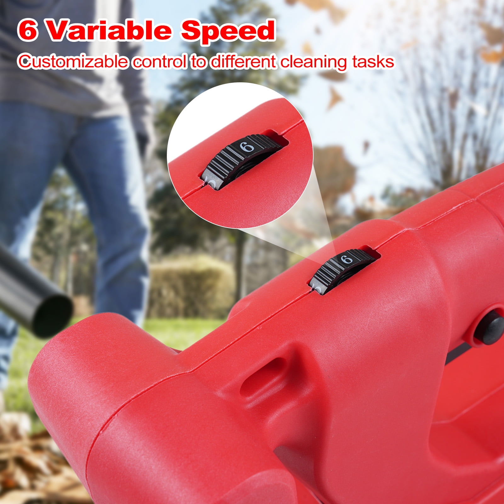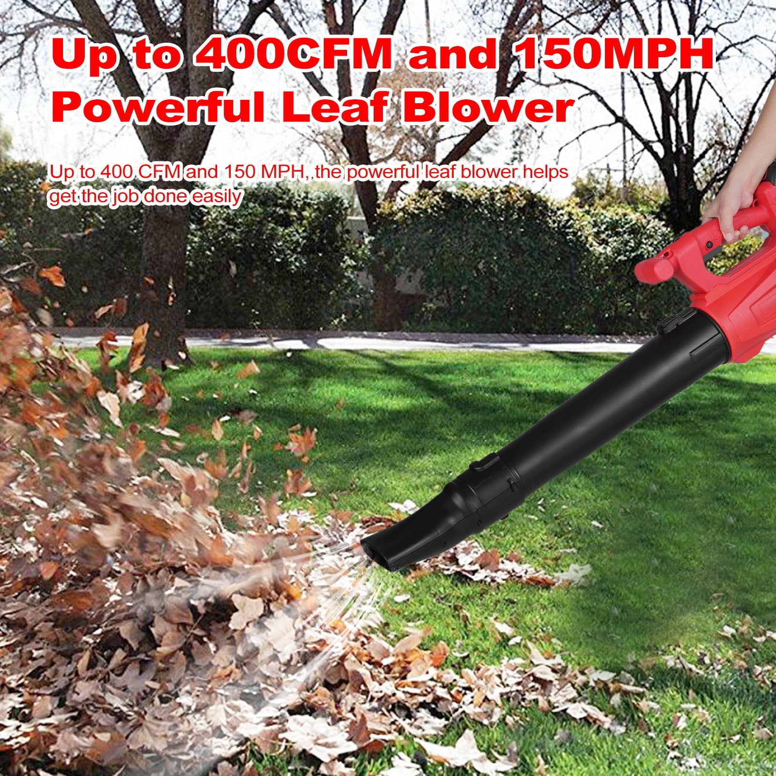 Powerful Copper Motors and Turbine Tech: This leaf blower is equipped with a copper motor, which has a longer-lasting life and lowers energy consumption than ordinary motors; also, the CACAGOO cordless leaf blower with battery and charger uses turbocharging technology to deliver a maximum air volume of 150 MPH. Meanwhile, the cellular radiator design at the bottom effectively reduces the risk of overheating- safer and is more durable. Ultra-lightweight and Ergonomic Design: CACAGOO understand customer?s needs of the house working tool; The body of this cordless leaf blower weighs less than 3.5lbs, and you can easily lift it with one hand; Not only that, our grip is made of flexible rubber material, which is non-slip and comfortable; Start with CACAGOO leaf blower and refresh your house working experience. Quick Assembly, All for The User, Broad Usage: Sweeps debris from shops, garages, driveways, outdoor yards, and gardens fell wet leaves or clears hard-to-reach surfaces. CACAGOO home dryer blower is also capable of effectively removing snow, dust, debris, spider webs, and drying your car surface. This cordless blower can be assembled in 1 minute, all parts are clear at a glance; All functions are controlled in 1 button, you can get started when you receive it. 6 Adjustable Speeds: This battery-powered leaf blower provides you with 6 levels of adjustable speed; The high-speed mode has an average no-load speed of 150mph, and the low-speed mode has an average no-load speed of 70mph. leaf blower battery powered, suitable for all usage scenarios. could help you easily convert from indoor work to outdoor work; With adjustable blowing tubes, people of all heights would find out a comfortable using experience. VERSATILE USE: Economical cordless leaf blower with high performance and durability is a real household gardening tool for cleaning work in the garage, patio, porch, sidewalk, car, balcony, and deck.Perfect Gift for Mother, Friends, Wife,