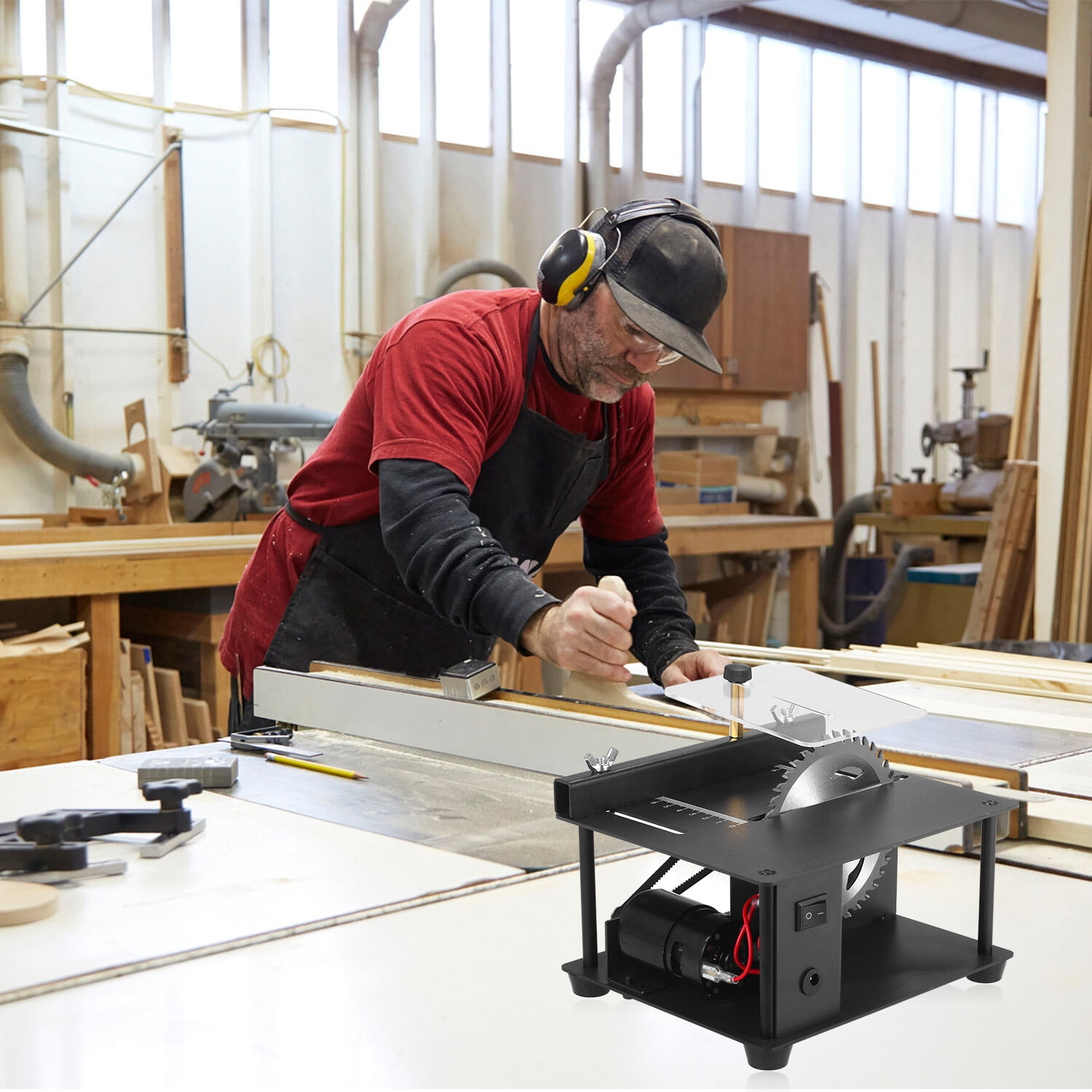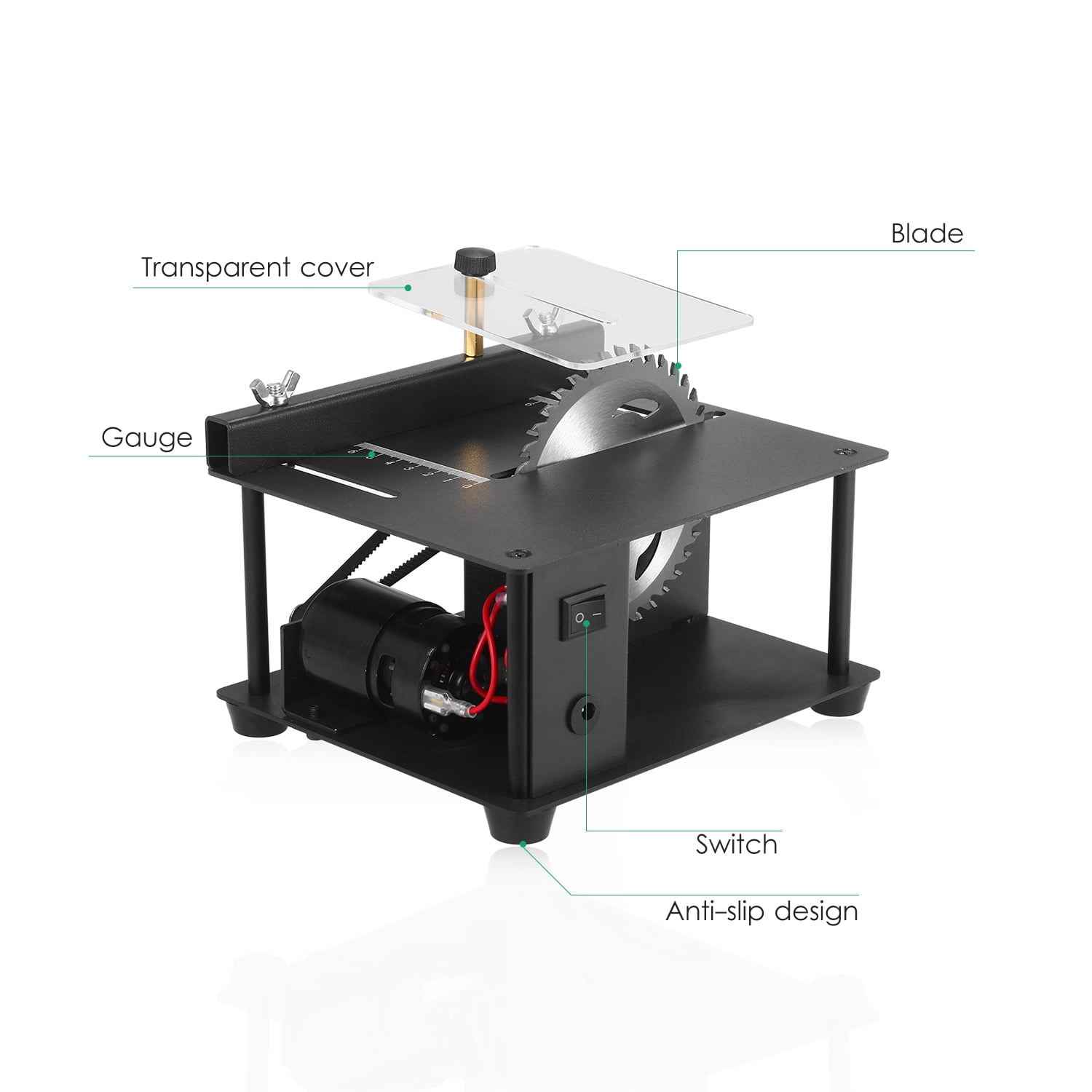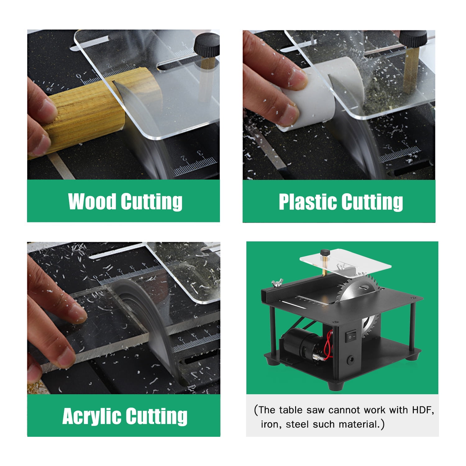 Introducing our Household Table Saw, the perfect blend of durability, portability, and practicality. This easy-to-operate tool is equipped with a high-power motor that can reach a cutting speed of up to 3000rpm/min, 16mm cutting depth, ensuring efficient and easy cutting of wood, board, or acrylic. Adjustable 0°-90° cutting angle and 7 rotating speeds for precise and quick cuts. This mini table saw is suitable cutting for PCB, Small wooden stick, Acrylic, Thin wood, basswood board, Plastic, Model material, etc. With this small table saw you can easily make some small crafts, small woodworking projects! Packing List: 1 * Table Saw 1 * Power Adapter 1 * User Manual 1 * Saw Blade 1 * Screwdriver 1 * Transparent Cover 2 * Wrench 2 * Wing Nut 1 * Coupling Nut 1 * Cap Nut 1 * Backer CACAGOO Table Saw, Mini Saw Horses 200W Electric Woodworking Tools with Blade Adjustable-Speed 35MM Cutting Depth, Wood Plastic Acrylic Cutter
