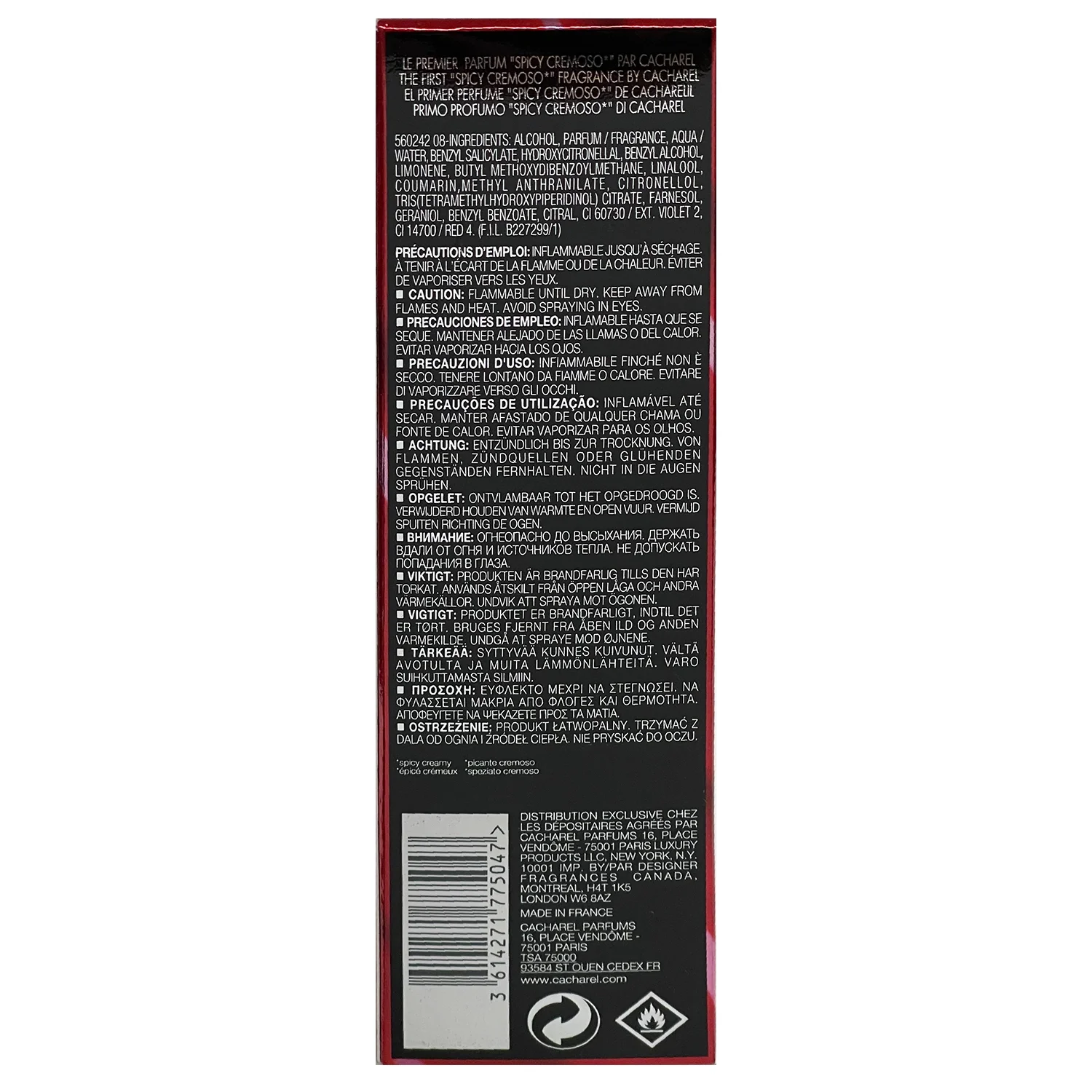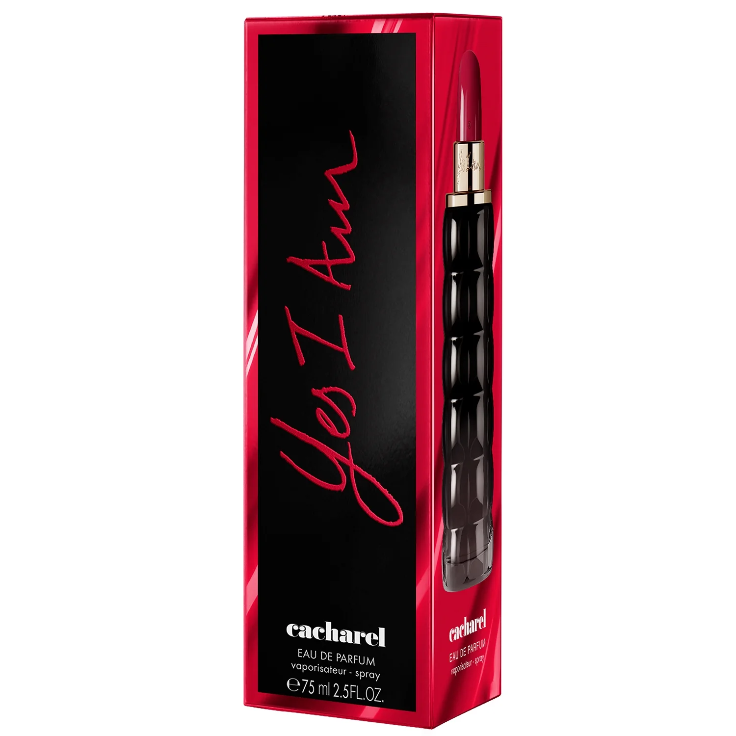 Cacharel Yes I Am Eau de Parfum, Perfume for Women, 2.5 oz, Full size Top notes are Raspberry, Mandarin Orange, Bergamot and Lemon; middle notes are Gardenia, Ginger flower, Amber, Jasmine, Orange Blossom and Rose; base notes are Milk, Caramel, Vanilla, Cardamom, Licorice, Coumarin, Benzoin, Sandalwood and Amberwood. Spray type applicator. Fragrance concentration is Eau de Parfum, which is the longest lasting concentration.