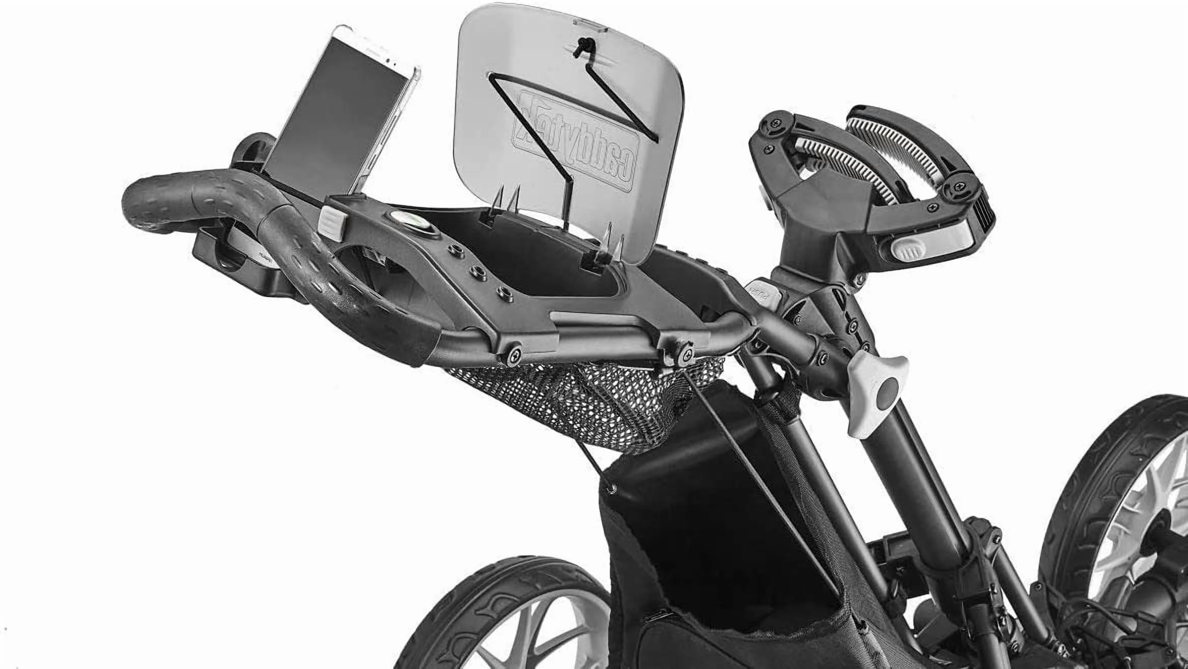 CaddyTek EZ-Fold Golf Pushcart, Version 8, CaddyTek has mastered pushcart innovation by making it as convenient and simple as possible to fold and unfold. Caddy Lite EZ V8. No more awkwardness on the course as you cart your clubs around the green. And smart features like a basket with a built-in cooler, Cell phone/GPS, umbrella, scorecard holder, and beverage holder fulfil the expectations that go along with a name like CaddyTek.