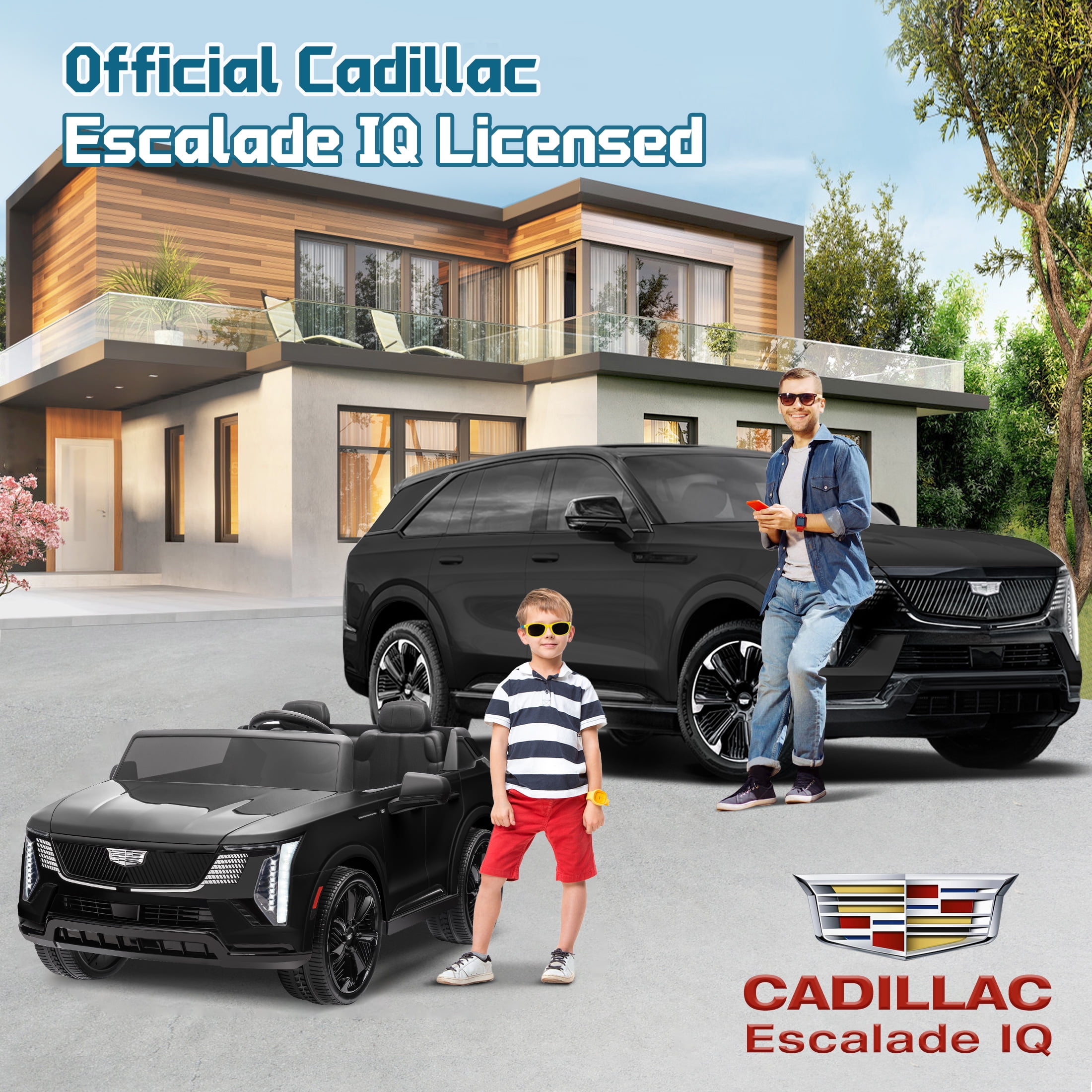 24V 2 Seater Ride on Cars, Licensed Cadillac Escalade IQ Powered Ride on Toys Truck with Remote Control, 4 Wheels Spring Suspension, LED Light, Electric Cars for Kids Ages 3-8 Gifts, Black