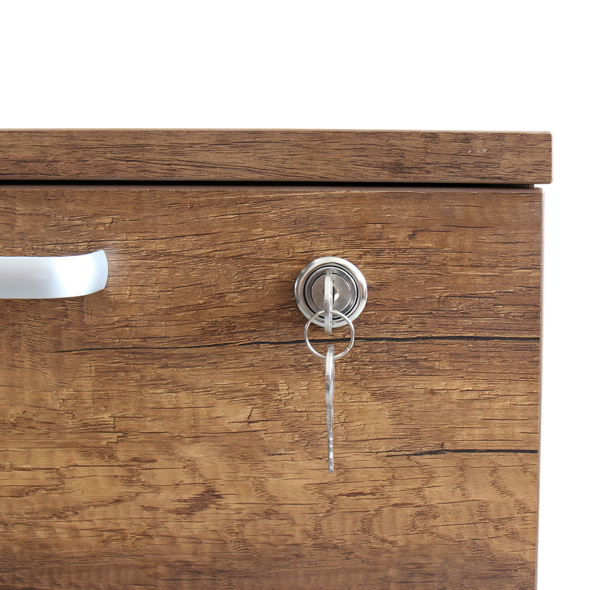 Caesar Hardware 3-Drawer Particle Board Wood Mobile File Cabinet with Lock and Wheels, Legal/Letter Size, Dark Maple