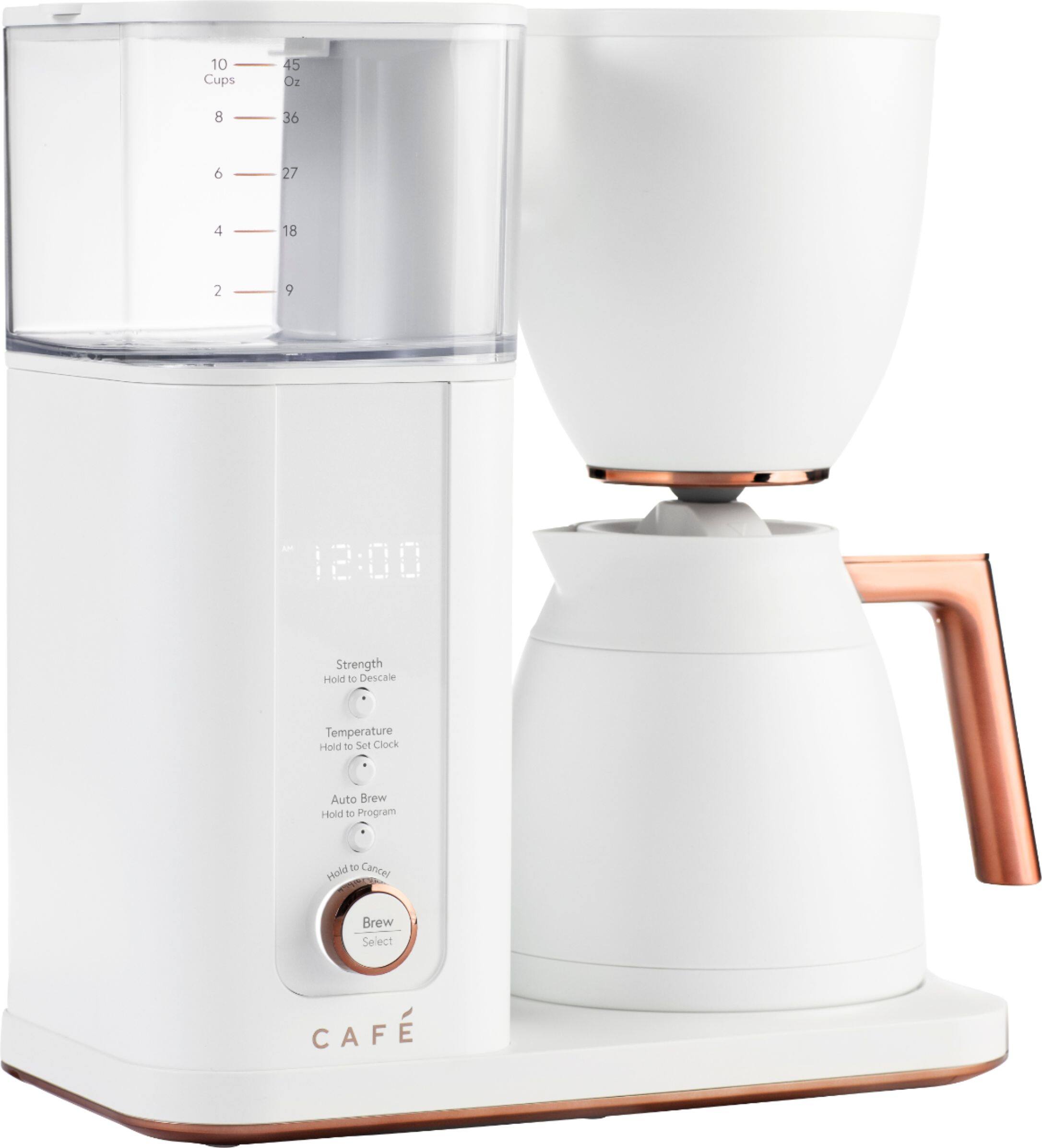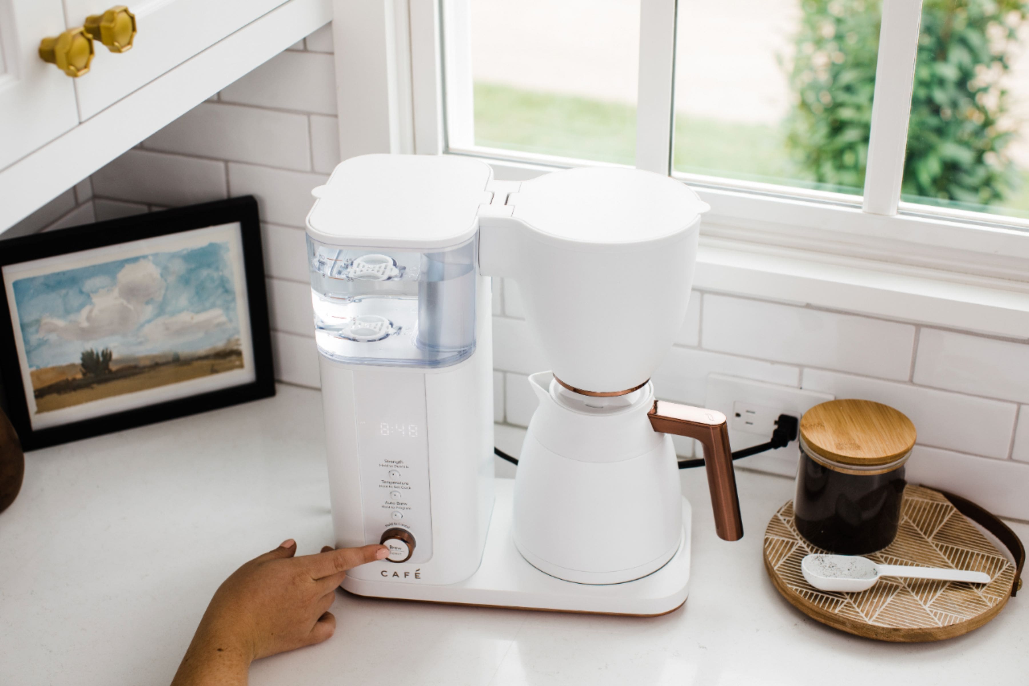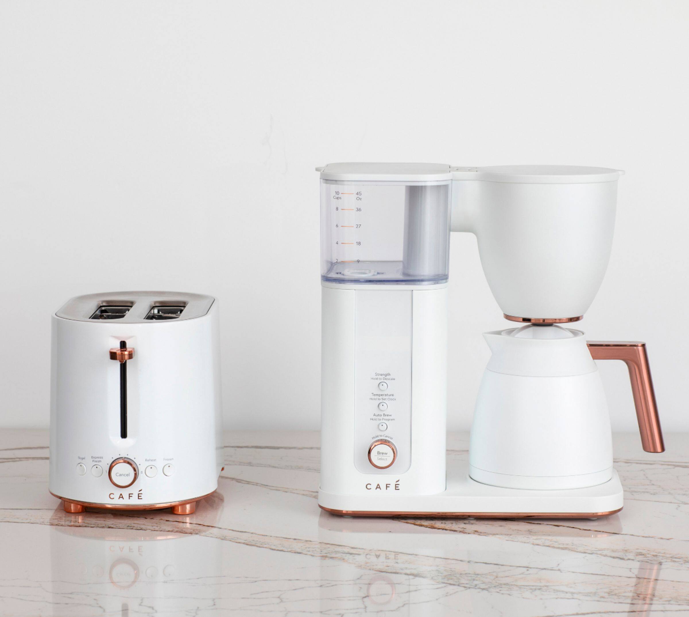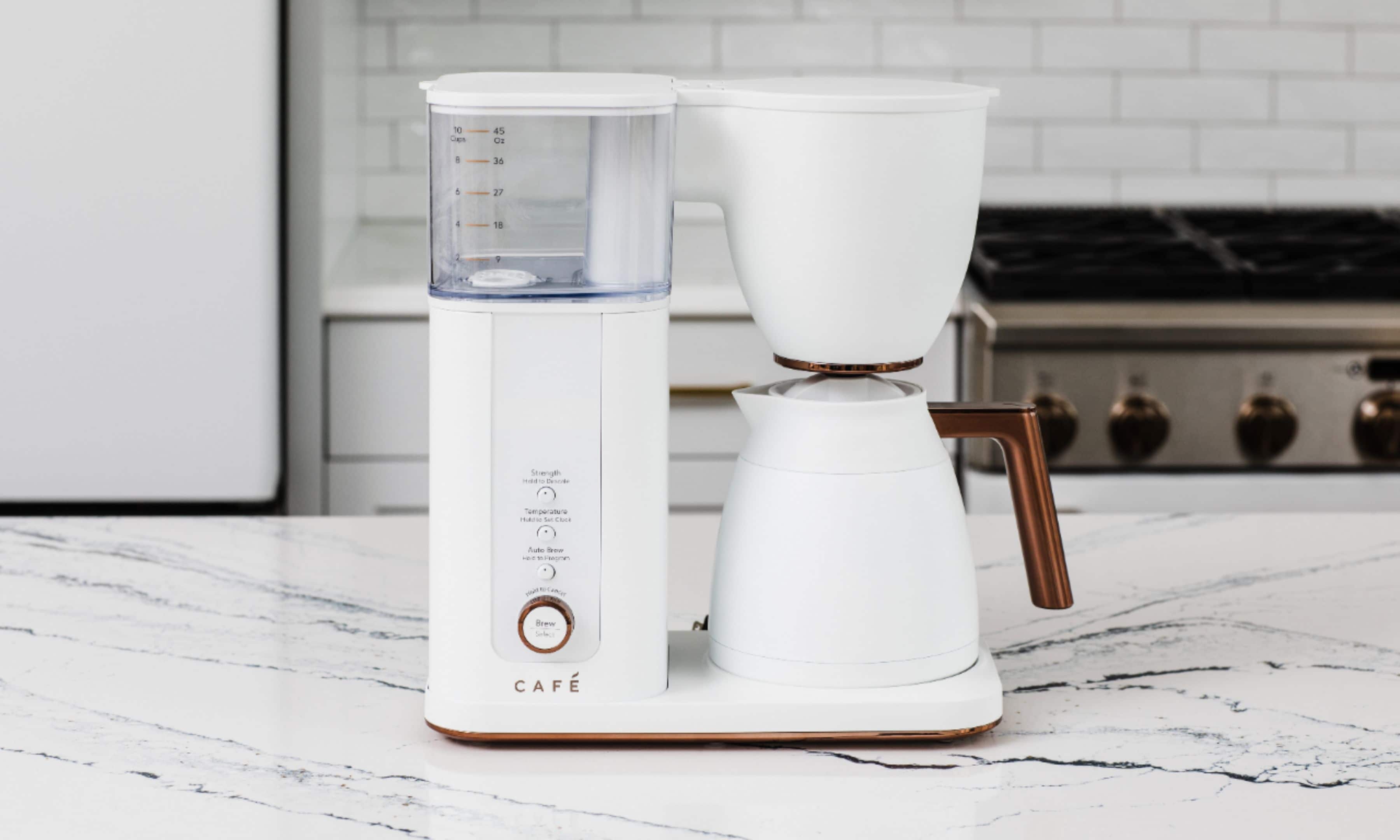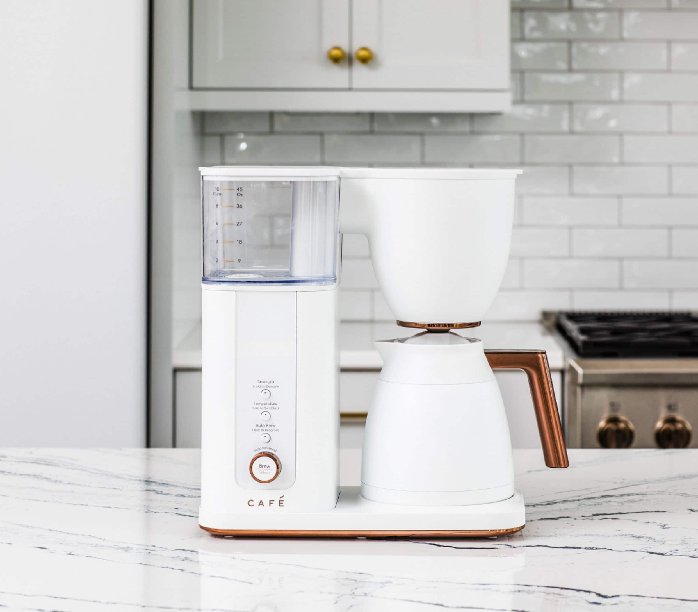 Nothing about your personal style is standard. So why should your appliances be? Created for those who want to reflect their true style in every room of their home, Café is distinct by design. Backed by showstopping features, every Café appliance gives you the form and the function you’ve been craving. Now you can bring that exceptional style to your countertops thanks to elegant and innovative drip coffee makers from Café, which are as intelligent as they are beautiful. All Café coffee makers are WiFi enabled and feature Voice-to-Brew capabilities, connected through the SmartHQ app and compatible with Alexa and Google Home. Precision Temperature Controls and Select Brew settings allow even the most discriminating coffee connoisseur to enjoy the ideal amount of coffee at the ideal brew, without ever sacrificing flavor or performance. The modern, clean cord storage beneath the coffee maker keeps countertops clutter-free and pairs perfectly with the signature Café copper accents that truly mark these as stylish appliances.