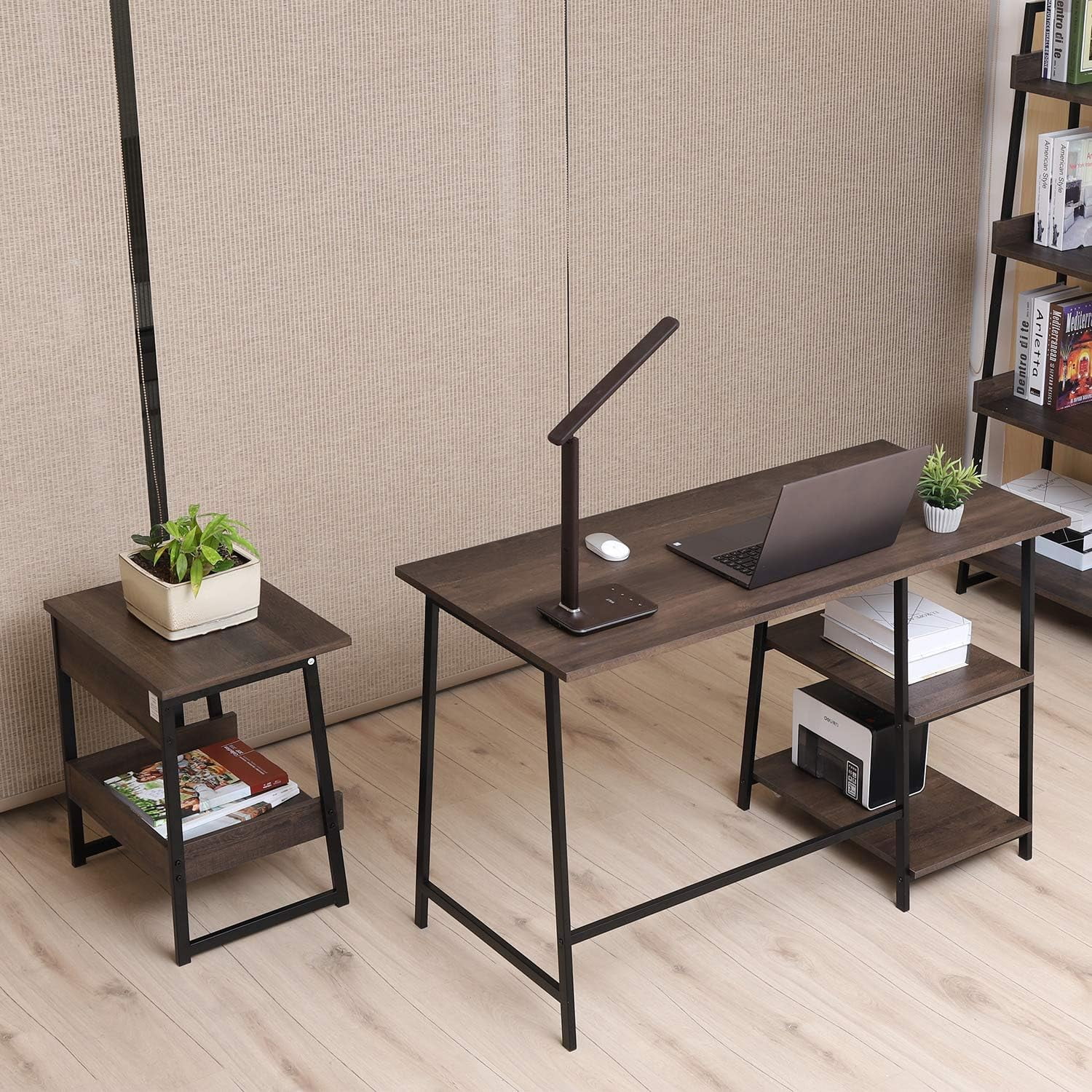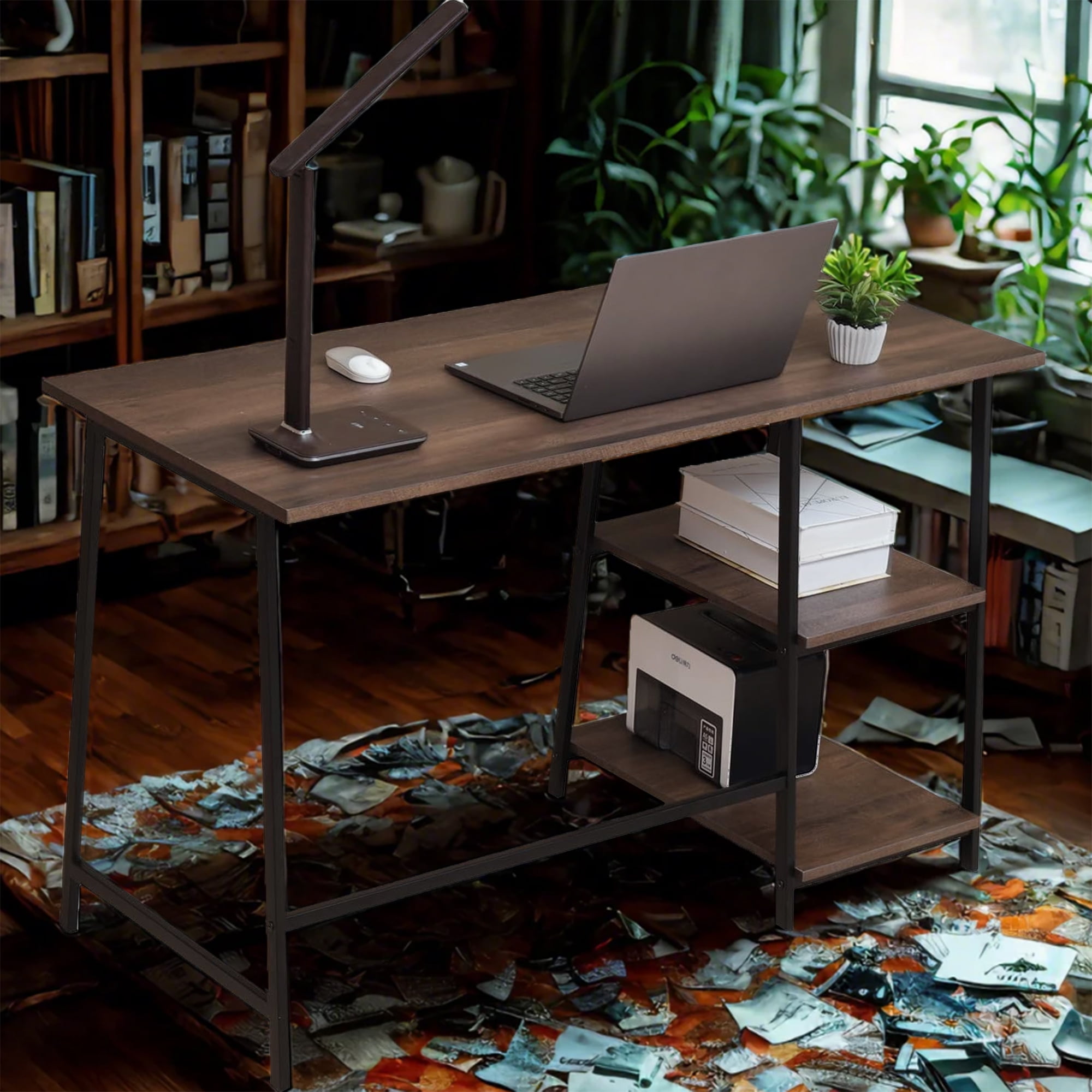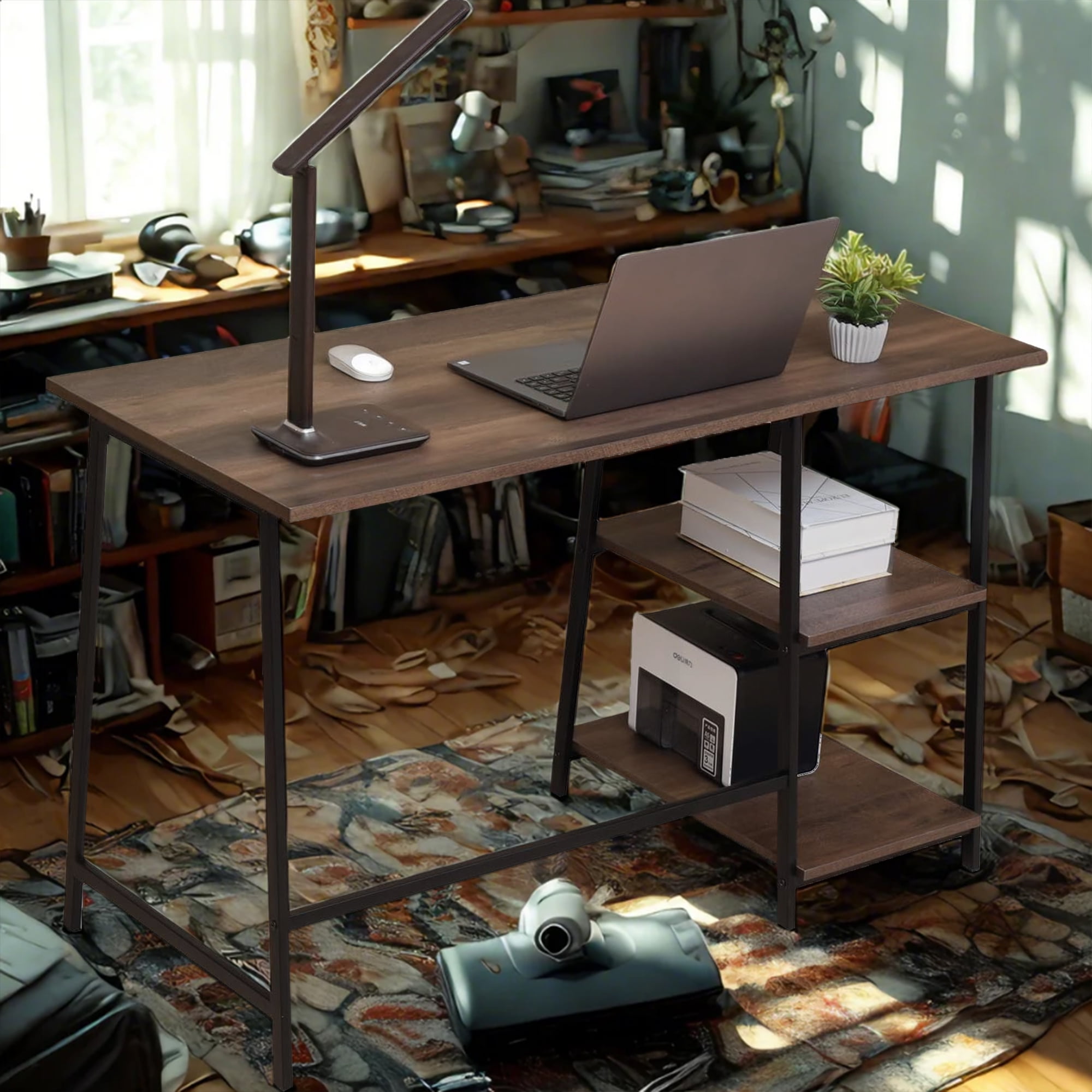 Elevate your home office with the Caffoz 48″ Computer Desk with Storage Shelf. Crafted with a classic and modern design, this desk features a sturdy metal frame and a durable Smoky Oak laminate top, providing a stylish and functional workspace. The built-in storage shelf offers convenient organization, while the easy-to-assemble construction ensures a hassle-free setup. Measuring 47.6″ L x 21.7″ W x 29.9″ H and weighing 31 lb, this versatile desk is the perfect addition to any modern home office or study area.