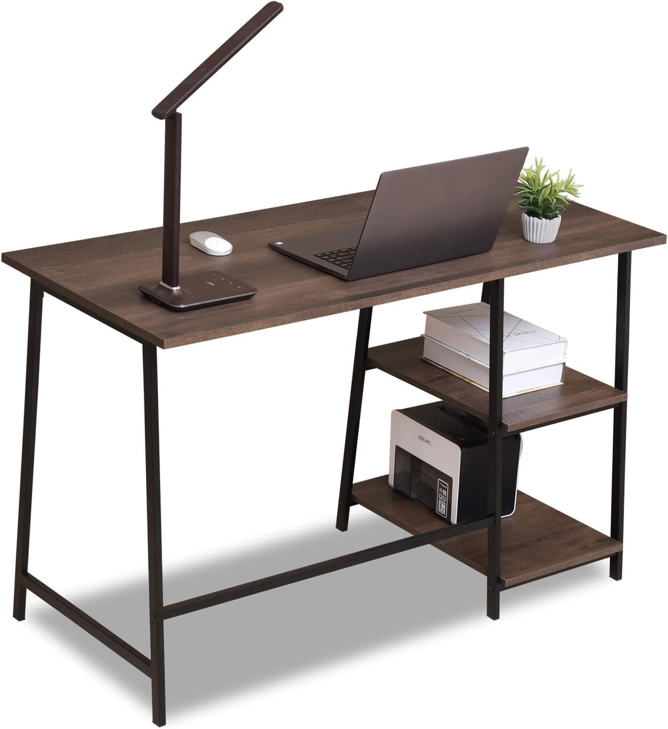 Caffoz 48″ Computer Desk with 2-Tier Storage Shelf, Workstation, Space-Saving Wooden Design,Smoky Oak