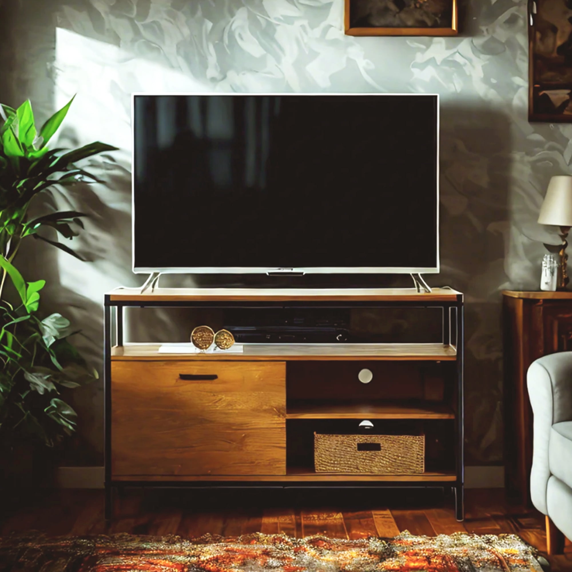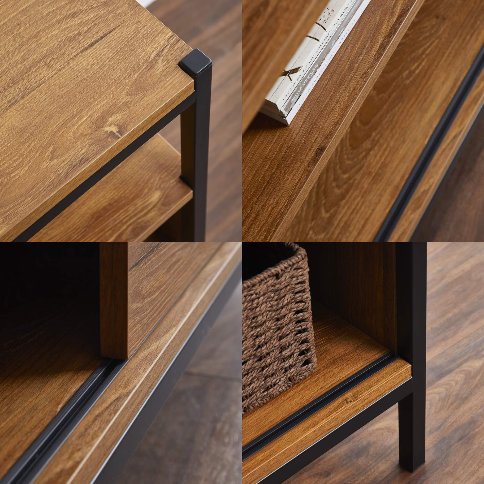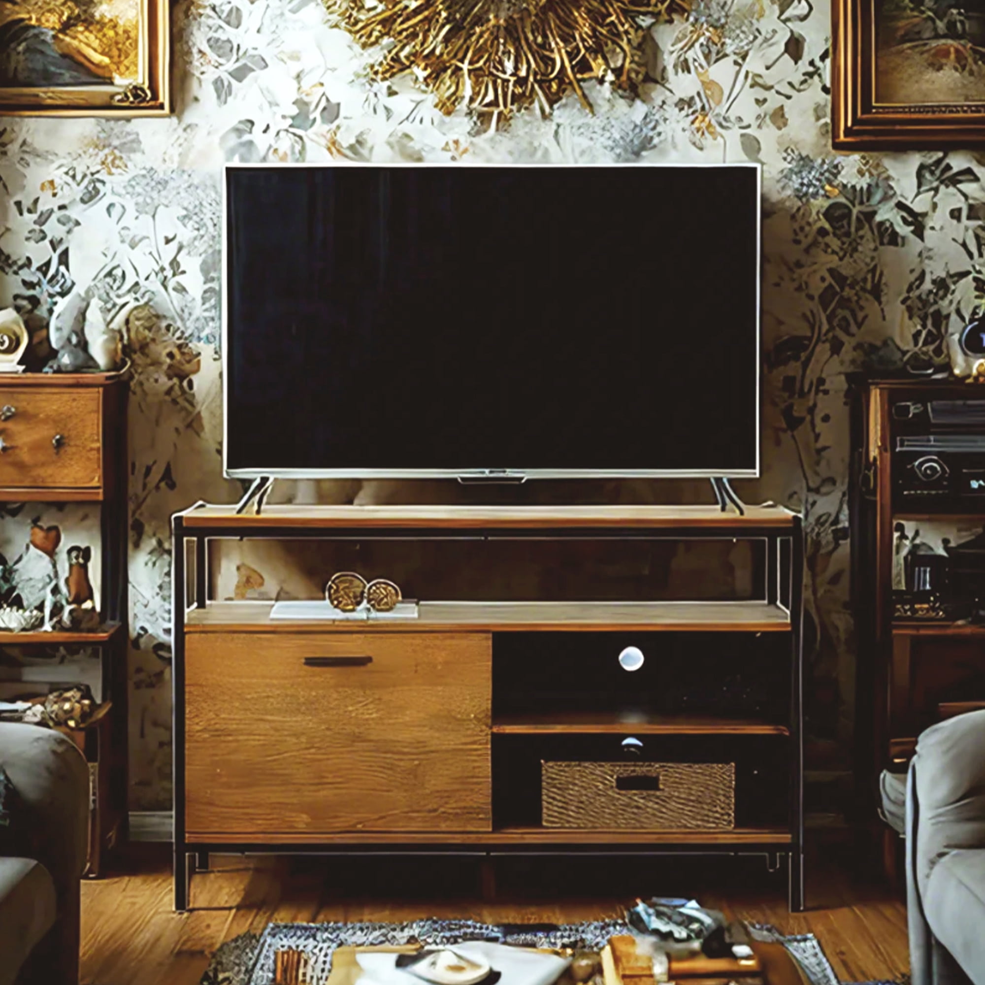 Crafted with high-grade MDF and durable laminate for long-lasting durability Features an oak brown wood grain finish and powder-coated black accents for a stylish, farmhouse-inspired look Fits TVs up to 50 inches, with dimensions of 47.6″(W)x17.3(D)x30(H) inches Includes 2 large door storage compartments with adjustable shelving to accommodate your media essentials Equipped with cable management holes to keep cords and cables organized and out of sight Easy to assemble with the provided instructional video for a hassle-free setup Backed by a customer satisfaction guarantee, offering a budget-friendly and durable TV stand solution