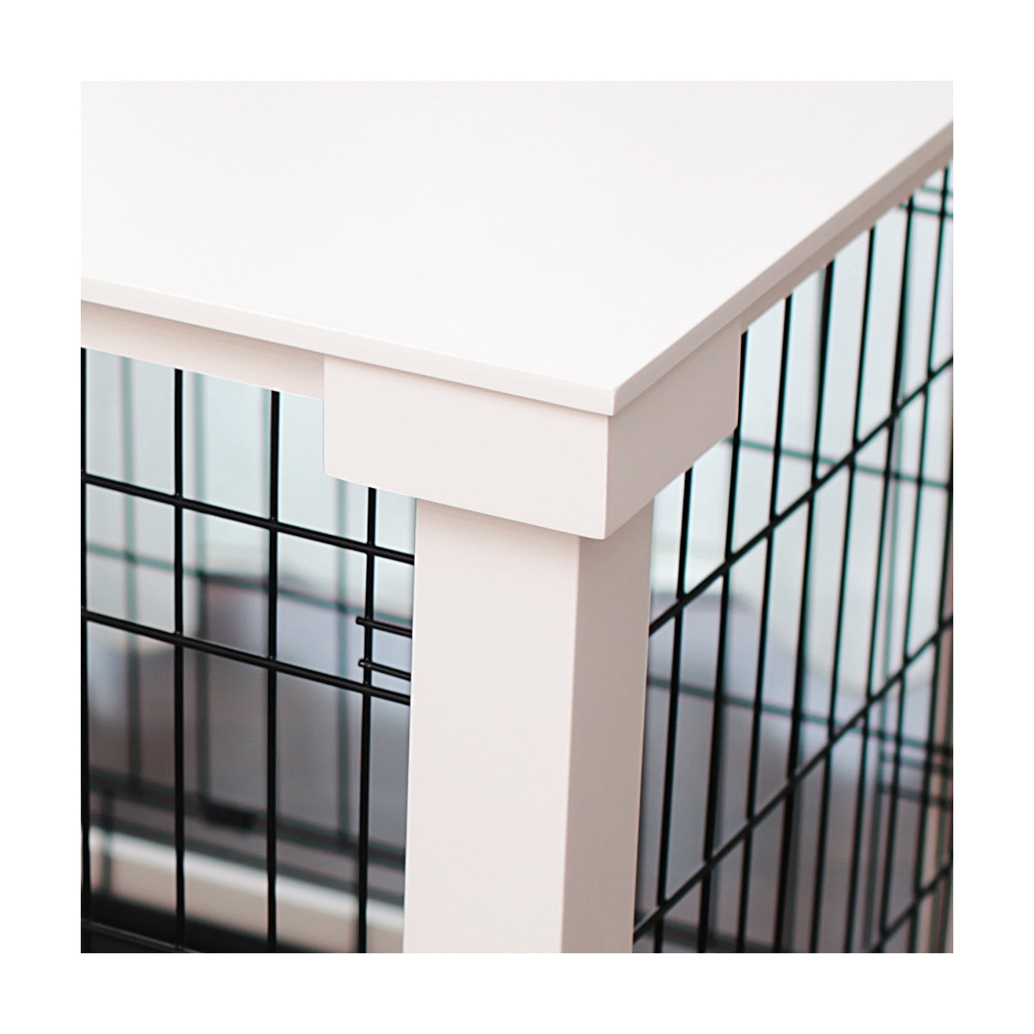 A solid Crate Cover that comes with metal crate turning the crate into a functional table surface while its original structure is kept intact to keep the pet confined.Easy assembly and disassembly; no hardware required. Improves functionality and appearance of pet crate without limiting visibility. Includes removable plastic tray. A solid Crate Cover that comes with metal crate turning the crate into a functional table surface while its original structure is kept intact to keep the pet confined Easy assembly and disassembly; no hardware required Improves functionality and appearance of pet crate without limiting visibility Includes removable plastic tray Door Dimensions: 23.0 x 16.0 Material – MDF Product Dimension – 28.59L,43.31W,30.08H,53.8WT