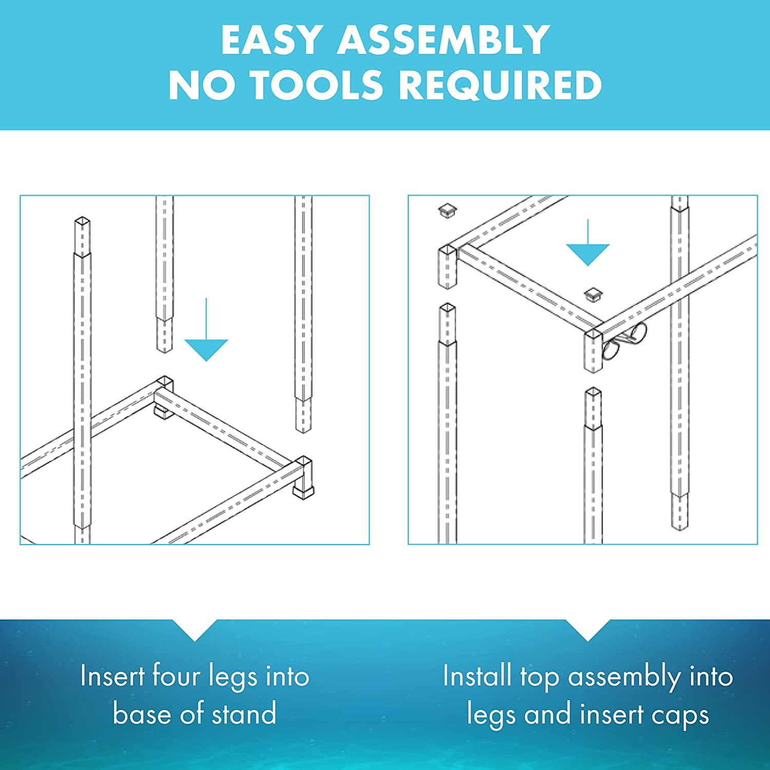 Caitec 45341 Titaneze 15/20H Gallon Tank Stand TitanEze is the only fully knock-down aquarium stand in the pet industry. Powder-coated to resist rust and water damage May be used in the home, office, classroom or lab Easy assembly with no tools required Holds a 15 gallon or 20H gallon tank, plus same or smaller on bottom shelf