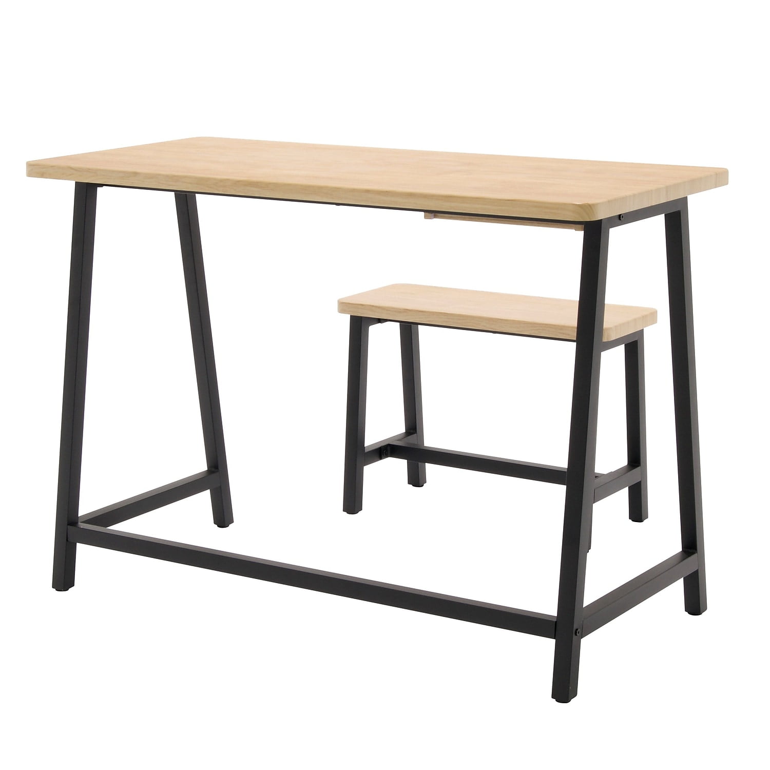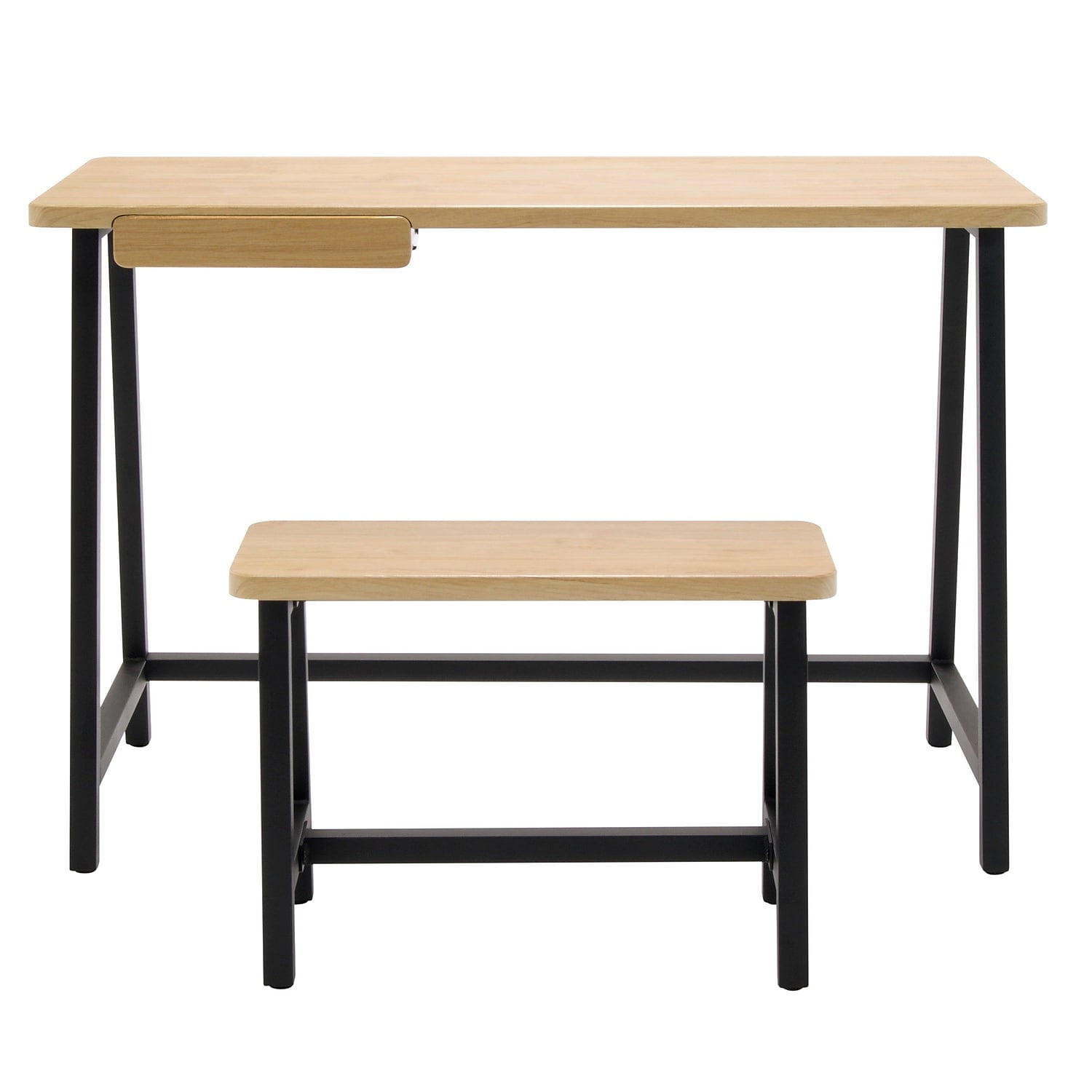 Modern wooden workstation set designed to enhance a traditional desk specifically for doing work or creating crafts Extra-wide, rectangular tabletop fit to juggle various crafts, projects, and creative instruments at one time Featured slide-out pencil drawer holds an abundance of writing and crafting supplies nearby for easy access when needed Wide bench crafted to provide a rugged seating option meant to instill a mindset of innovation and inventiveness Thick, heavy-duty steel legs, footpads, and rounded corners provide an effective durable, stable, and reliably level space Material: Wood and steel Color: Ashwood and graphite Desk dimensions (L x W x H): 43.25 x 19.75 x 30.25 inches Bench dimensions (L x W x H): 23.5 x 9.5 x 17 inches