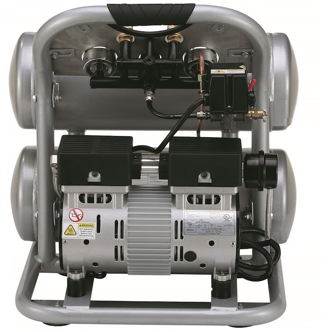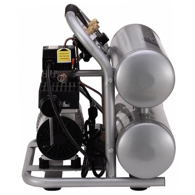 California Air Tools 4610AC is a 4.6 Gallon, electric, aluminum twin stack air compressor. It is one of the quietest air compressors in the industry with only 60 decibels of sound at 1680 RPM. Its oil-free dual piston pump has a lifetime of 3,000 plus hours at a 1 HP with a 2 HP peak.