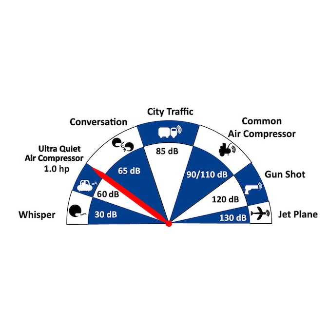 - Designed to be one of the quietest air compressors in the industry, having only 60 decibels of sound while operating at 1680 RPM