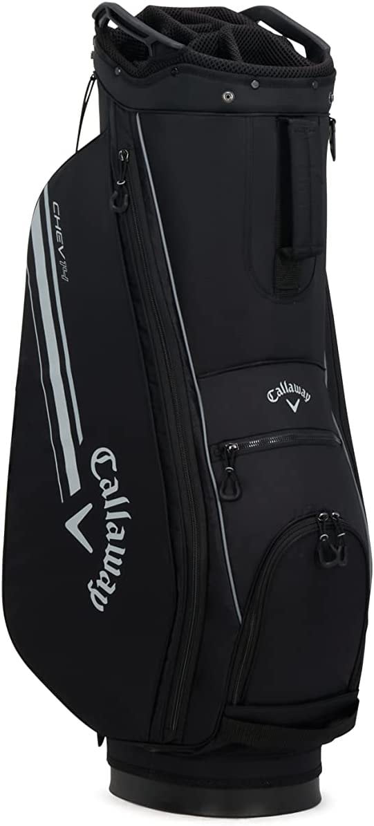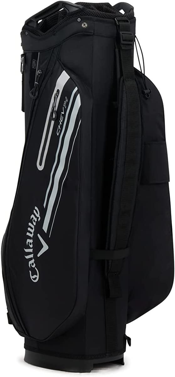 The new Callaway Chev offers a sleek and versatile midsized stand bag. The Chev features updated branding, ample storage and 4-way club organization at an exceptional value. Weighs 5 lbs.