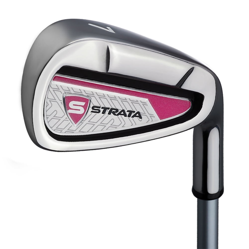 Callaway Women’s Strata ’19 Complete 11-Piece Graphite Golf Club Set with Bag, Right Handed: DRIVER-460cc forged driver has a large sweet spot and provides more forgiveness to help you rip it off the tee. IRONS / WEDGE-These stainless steel irons offer a great combination of forgiveness and control. FAIRWAY WOOD-This 3-wood is very forgiving and has a more aerodynamic head shape for long, high flying shots PUTTER-Mallet with T-Style alignment to help give you incredible accuracy. HYBRID-A great alternative to difficult long irons, allowing for more confidence on a variety of shots. STAND BAG-The lightweight, durable stand bag comes with five convenient pockets, an additional cooler pocket, a rain hood and a backpack strap system. Blade putter with alignment to help give you incredible accuracy What’s Included 10.5° Driver 5 Wood 5 Hybrid 7 Iron 9 Iron Sand Wedge Blade Putter Lightweight Stand Bag 3 Head Covers Stand Bag Details: Divided top for club organization Ample pockets for on-course storage Self-activating stand Double shoulder straps Matching rain hood