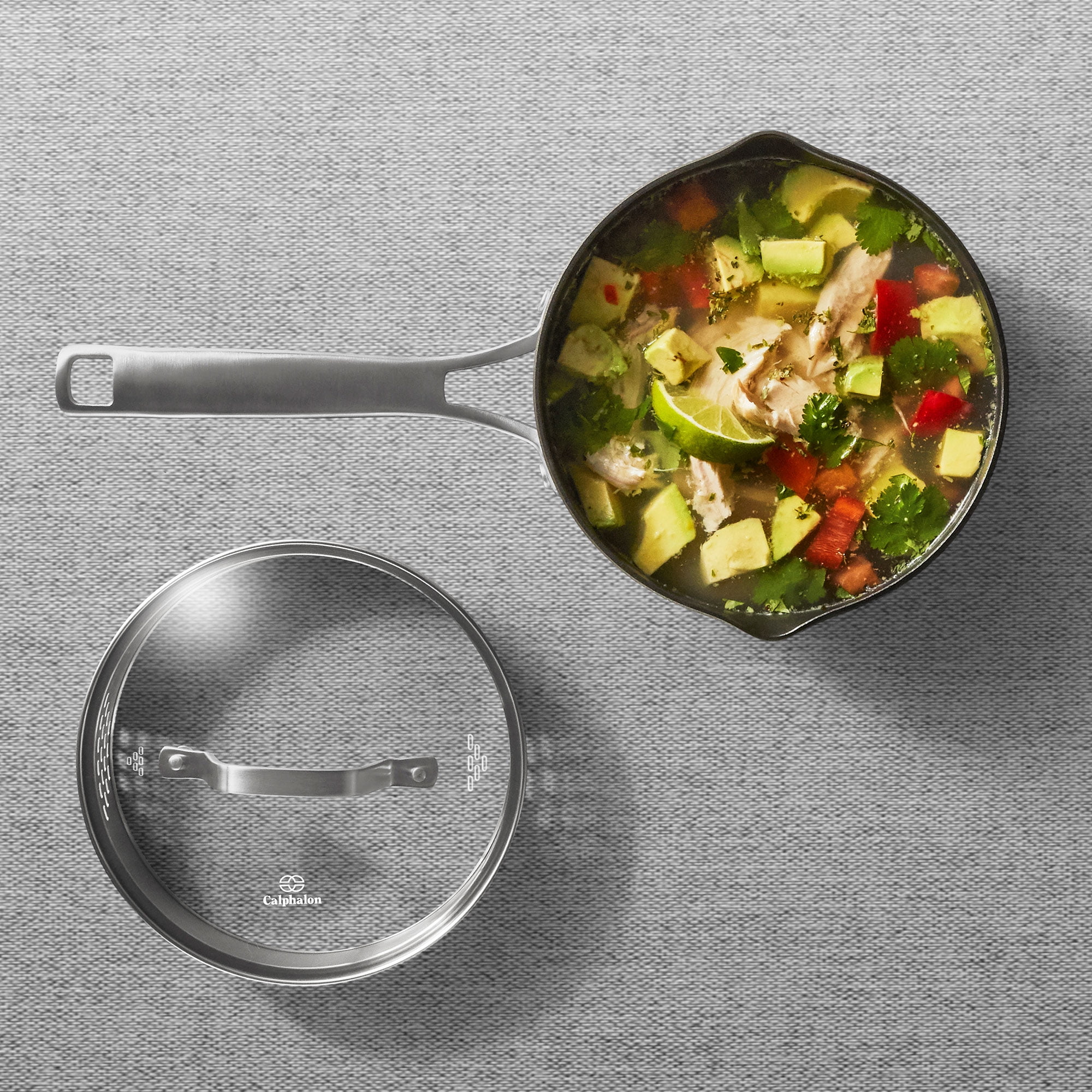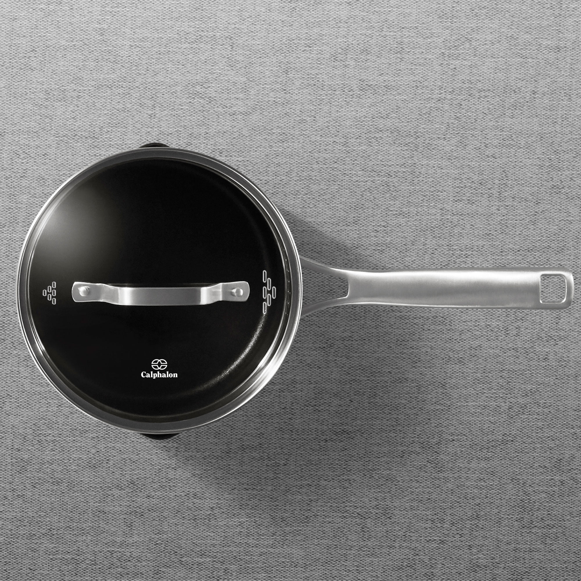 Stop struggling with scorched, overused pans that leave your food burnt or undercooked. With the Calphalon Premier Hard-Anodized Nonstick Saucepan, you’ll never have to worry about uneven temperatures or stuck-on food again. This 3.5-Quart shallow saucepan is ideal for frying, sauteing, searing, boiling, and more. No more soaking is required due to the 3 PFOA-free nonstick layers that add durability while increasing the lifespan of this pan. The hard-anodized aluminum provides an even heat distribution that cooks your food better, producing an optimal taste. Fitted with a tempered glass lid, you’ll be able to simmer, prevent oil burns, and keeps your foods warm with ease. Featuring stainless steel stay-cool handles, you won’t have to worry about unnecessary burns or keeping a towel close. This pan is oven-safe up to 450-degrees, so you can go from sauteing to broiling or baking without having to switch your cookware. Whatever your stovetop setup is—gas, electric, glass, or halogen—this pan is built to produce mouth-watering dishes. When you’re finished, toss the pan in the dishwasher for an easy clean. You’re days of cursing at cookware, wasting food, and soaking pans are done. Upgrade your cookware with the Calphalon Premier Hard-Anodized Nonstick Saucepan.