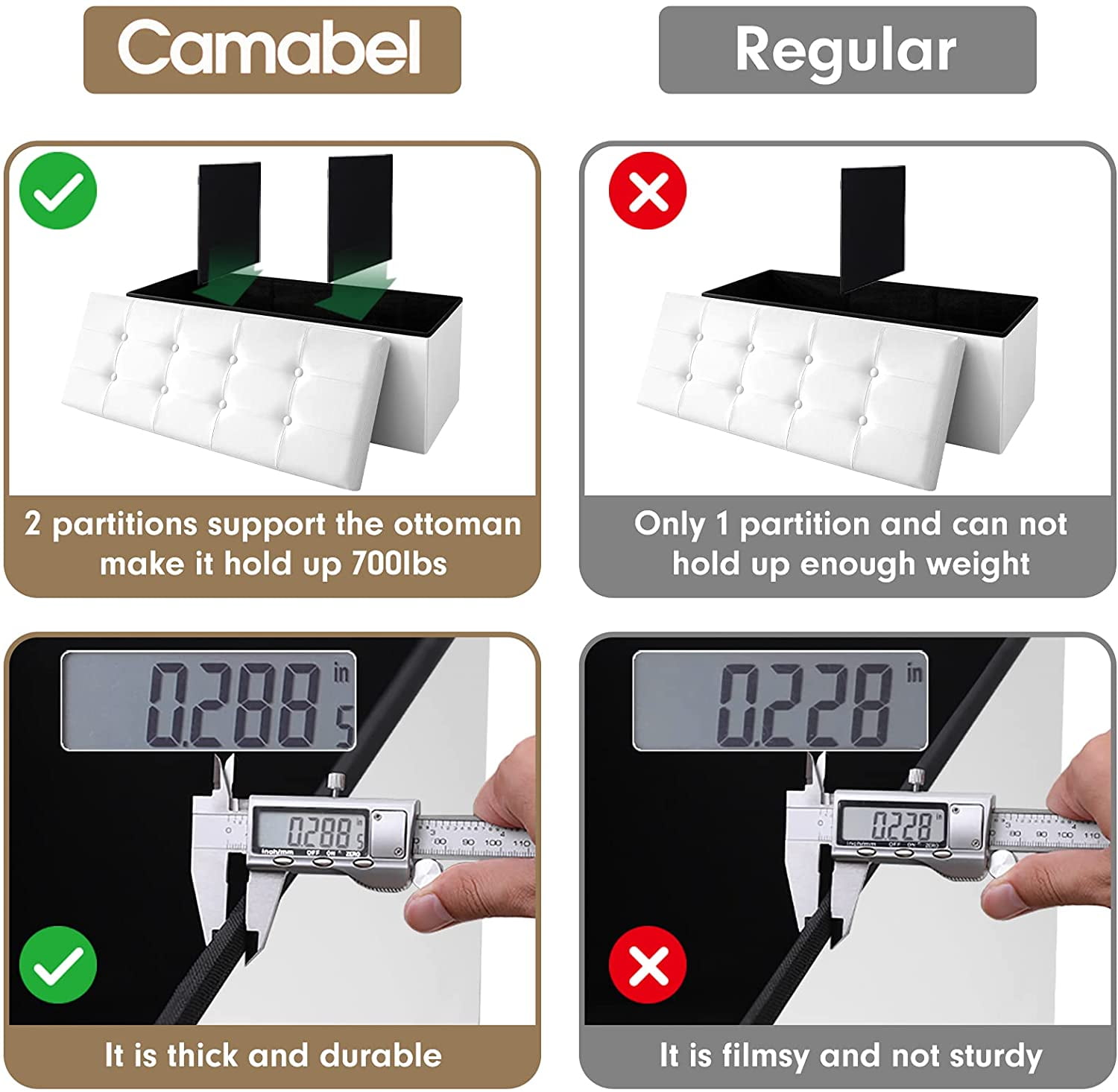 Camabel Folding Ottoman Storage Bench Cube 43 inch Hold up 700lbs Faux Leather Long Chest with Memory Foam Seat Footrest Padded Upholstered Stool for Bedroom Bed Coffee Table Rectangular White BG470
