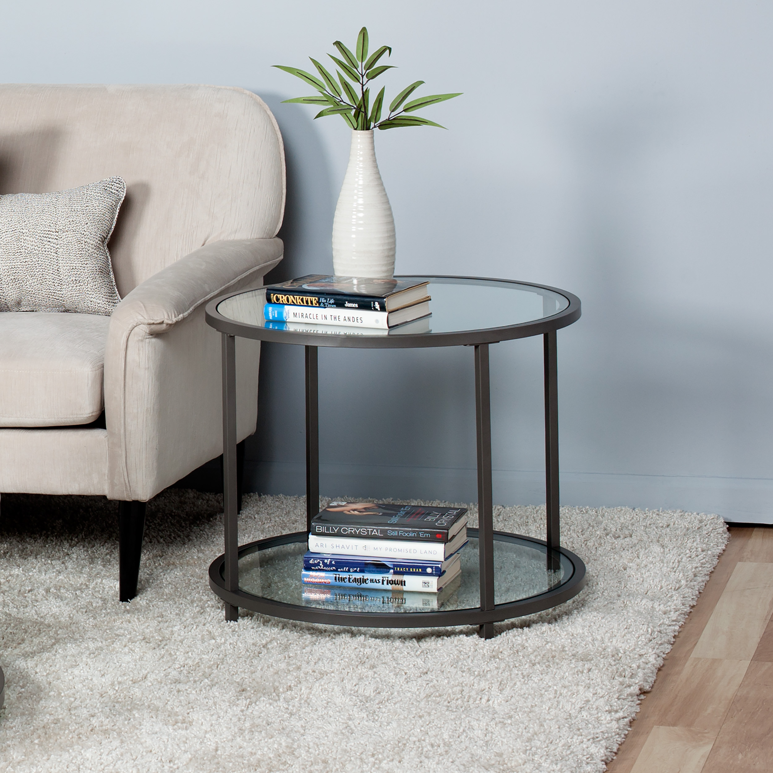 Camber Modern 2-Tier Round Living Room Tempered Glass End Table Glass Metal Frame 26 Inch