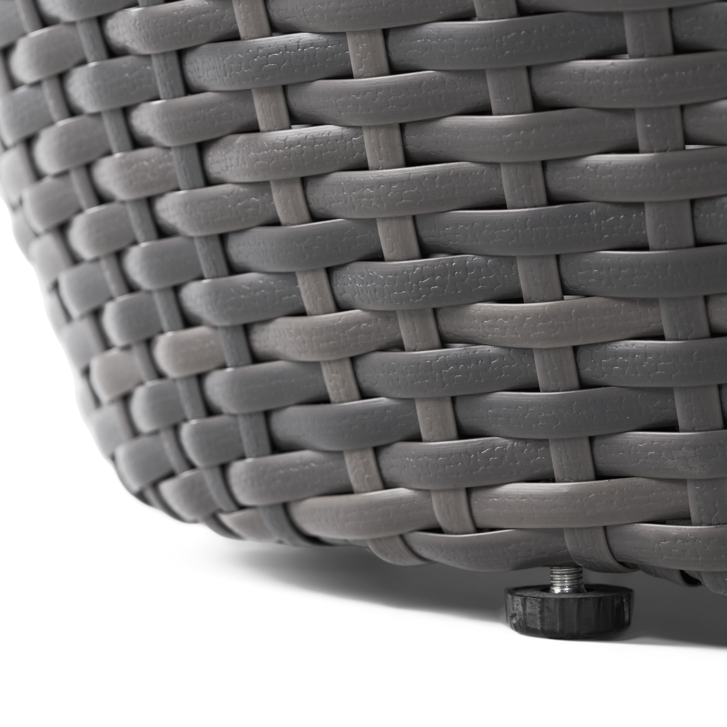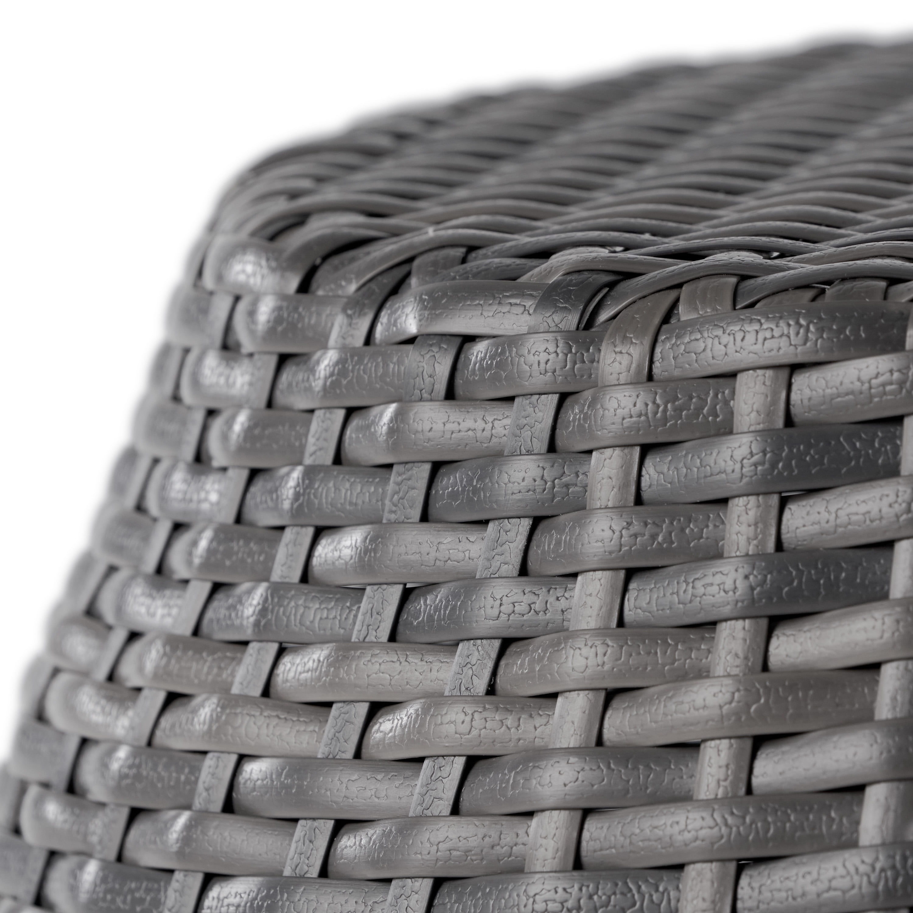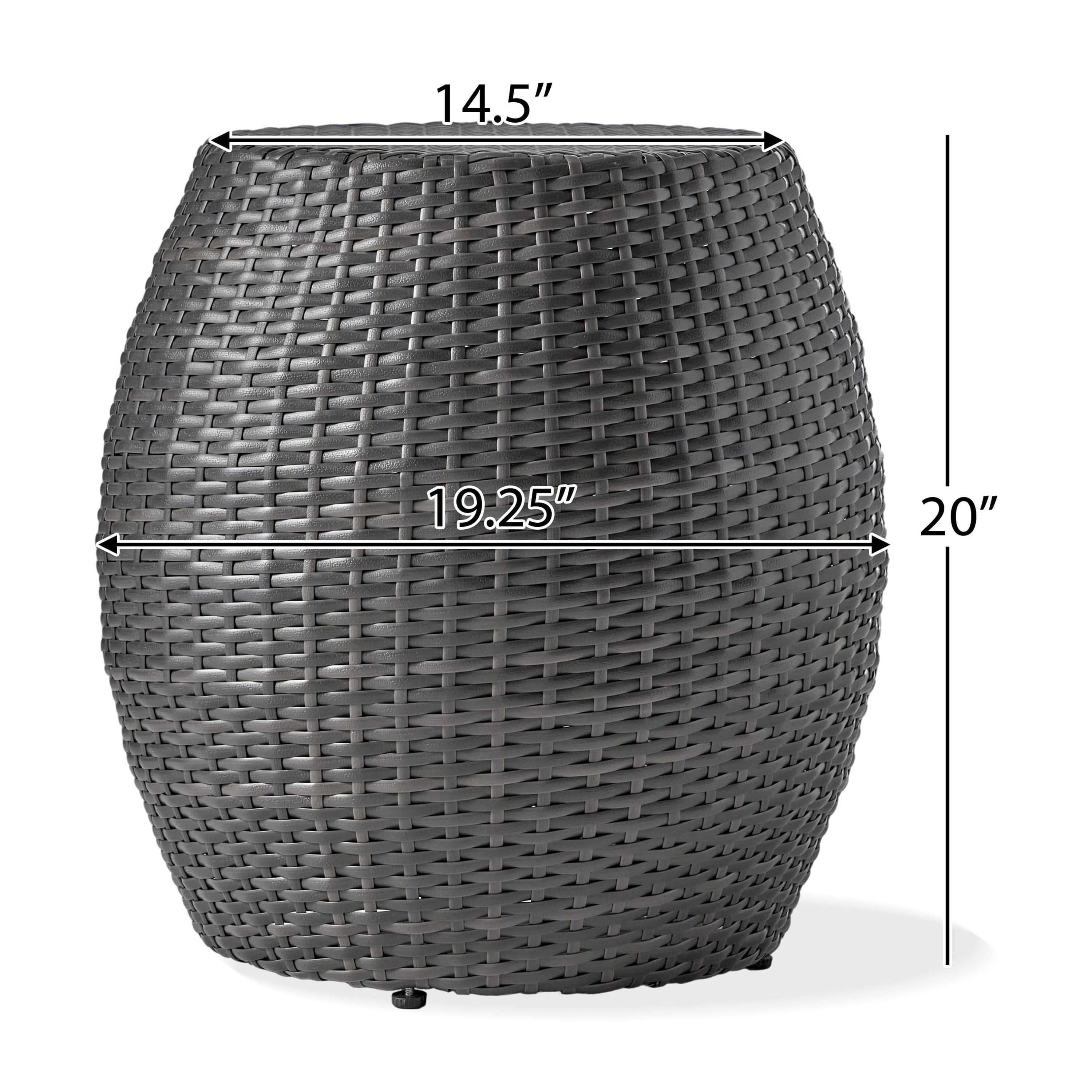 Includes: One (1) Side Table Material: Polyethylene Wicker Frame Material: Iron Wicker Finish: Grey No Assembly Required Hand Crafted Details Dimensions: 19.25 inches deep x 19.25 inches wide x 20.00 inches high