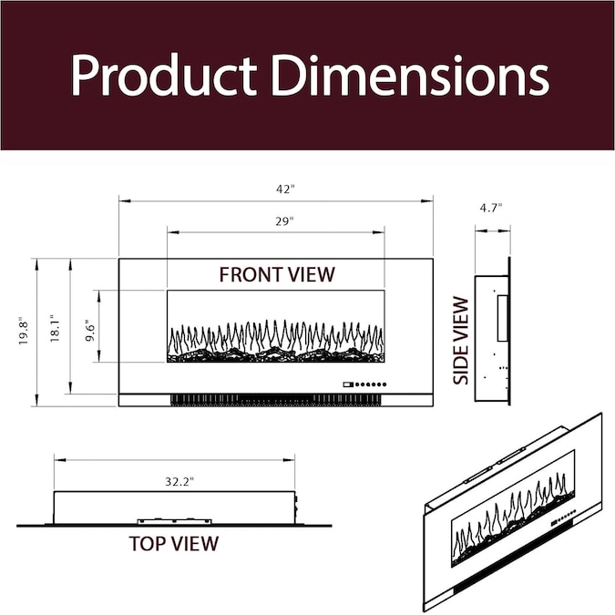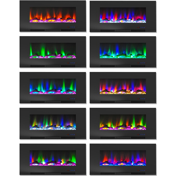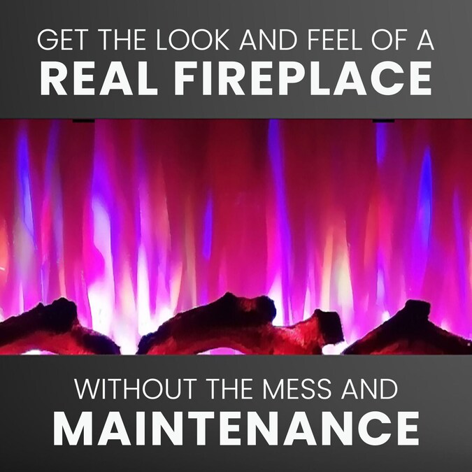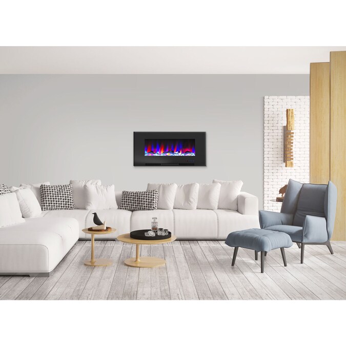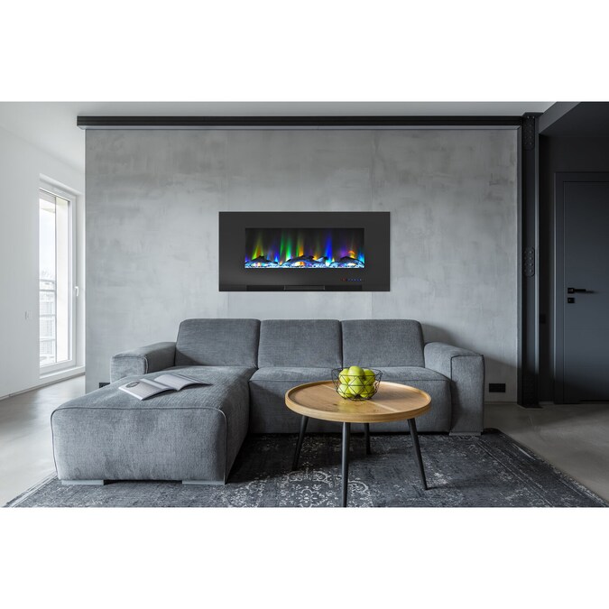 Treat yourself to cozy evenings by the fire with a 42-inch color-changing wall fireplace by Cambridge. Featuring a stunning array of flame colors and effects that flicker and glow across a bed of crystal rocks, you can customize a beautiful fire show to suit your mood. Whether you’re feeling classic orange, bright green, ultraviolet, or all the colors at once, our unique color spectrum is sure to please. Designed for wall mounting to maximize floor space, you can easily install this electric fireplace heater in your living room, family room, bedroom, or home office. Heated fan-forced air efficiently warms an indoor space up to 210 square feet with two heat settings, a 9-hour on/off timer, and built-in overheat protection for your safety and peace of mind. The enchanting LED flames operate with or without heat, providing year-round enjoyment whenever you desire. Included for your convenience is a user-friendly remote control, making it easy to adjust all the settings from across the room without leaving your seat. Simply turn it on and relish true fireside bliss without the smoke and mess of a traditional fireplace. Rest and relax in comfort and style with an electric wall fireplace by Cambridge.