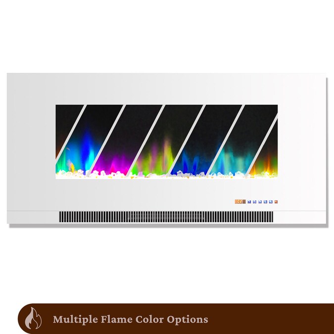 Treat yourself to cozy evenings by the fire with a 42-inch color-changing wall fireplace by Cambridge. Featuring a stunning array of flame colors and effects that flicker and glow across a bed of crystal rocks, you can customize a beautiful fire to suit your mood. Whether you’re feeling classic orange, ultraviolet, or a mix of colors, our unique color spectrum is sure to please. Designed for wall mounting to maximize floor space, you can easily install this electric fireplace heater in your living room, family room, bedroom, or home office. Heated fan-forced air efficiently warms an indoor space up to 210 square feet with 2 heat settings, a 9-hour on/off timer, and built-in overheat protection for your safety and peace of mind. The enchanting LED flames operate with or without heat, providing year-round enjoyment whenever you desire. With an electric wall fireplace by Cambridge, you’ll rest and relax in true fireside bliss without the smoke and mess of a traditional fireplace.