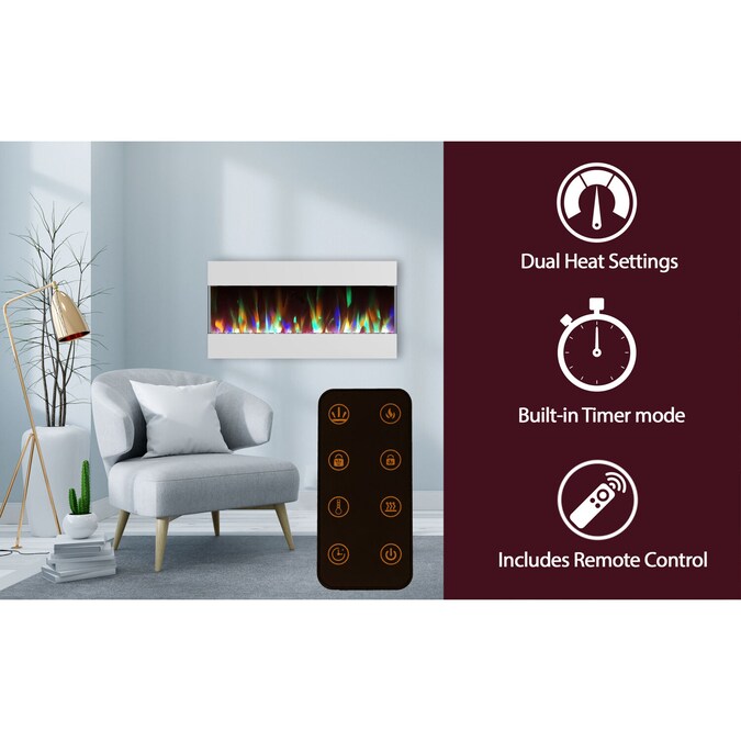 Enjoy the perfect ambiance for your home with Cambridge’s recessed, wall mounted electric fireplace. Our modern and sleek design is perfect for any home and offers a LED color changing display to fit seamlessly into your home’s aesthetic. The flames can operate with or without heat, which makes it perfect for warmer seasons and year-round use. A convenient remote control is included so you can easily adjust the settings from anywhere in the room. Our fireplace is easy to install and comes with the options to be wall mounted or built into the wall. No more hassle of a real fireplace with our Cambridge Electric Fireplace. Get the realistic flame effect of a real fireplace without all the maintenance.
