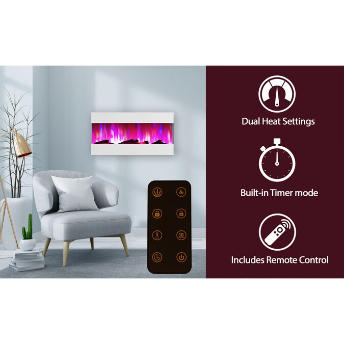 Cambridge 42-in W White LED Wall-mount Electric Fireplace with Remote Control Included