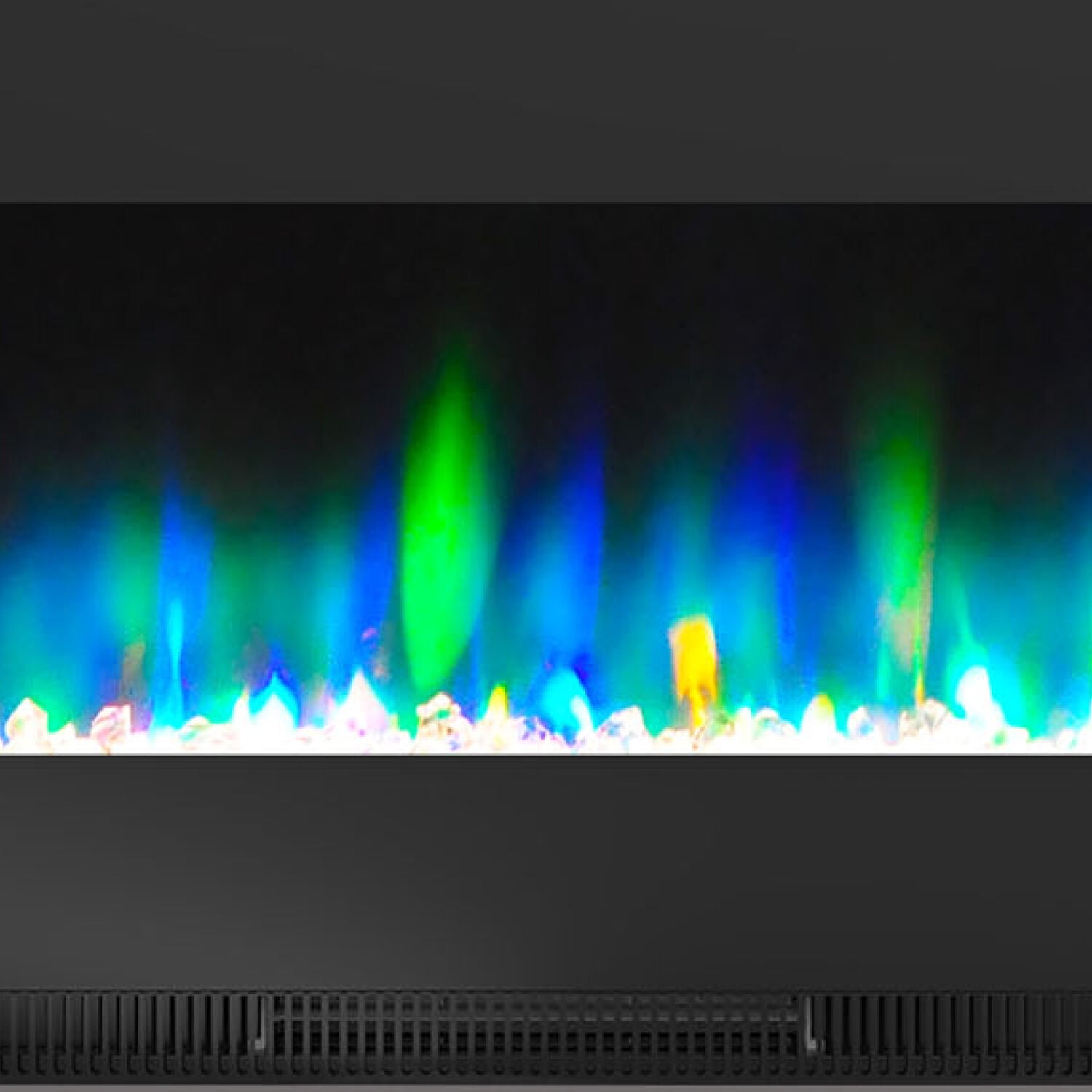 Treat yourself to cozy evenings by the fire with a 50-inch color-changing wall fireplace by Cambridge. Featuring a stunning array of flame colors and effects that flicker and glow across a bed of crystal rocks, you can customize a beautiful fire to suit your mood. Whether you’re feeling classic orange, ultraviolet, or a mix of colors, our unique color spectrum is sure to please. Designed for wall mounting to maximize floor space, you can easily install this electric fireplace heater in your living room, family room, bedroom, or home office. Heated fan-forced air efficiently warms an indoor space up to 210 square feet with 2 heat settings, a 9-hour on/off timer, and built-in overheat protection for your safety and peace of mind. The enchanting LED flames operate with or without heat, providing year-round enjoyment whenever you desire. With an electric wall fireplace by Cambridge, you’ll rest and relax in true fireside bliss without the smoke and mess of a traditional fireplace.