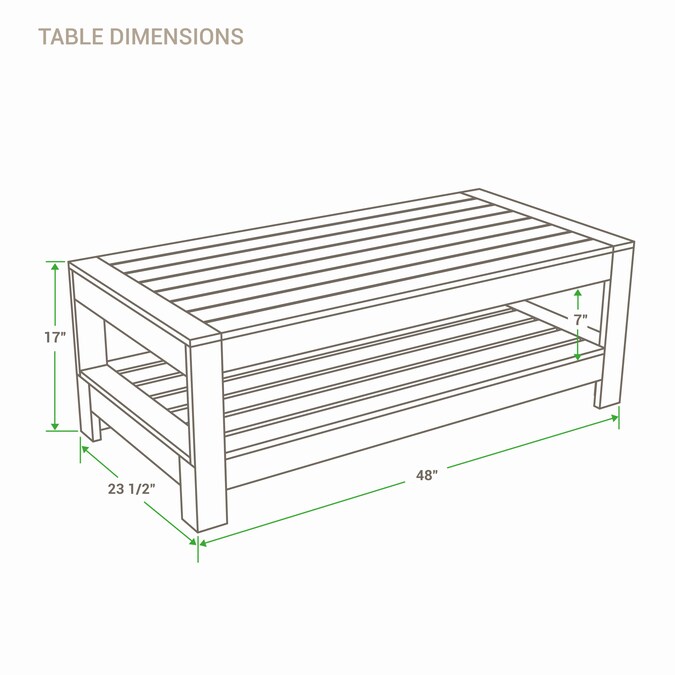 - A convenient patio coffee table with a shelf underneath for extra storage