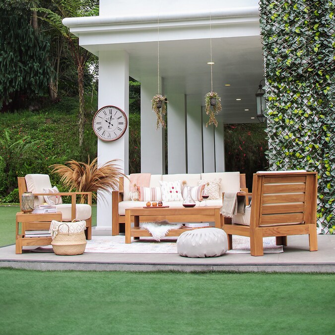 - Natural teak color brings an exotic vibe to your patio