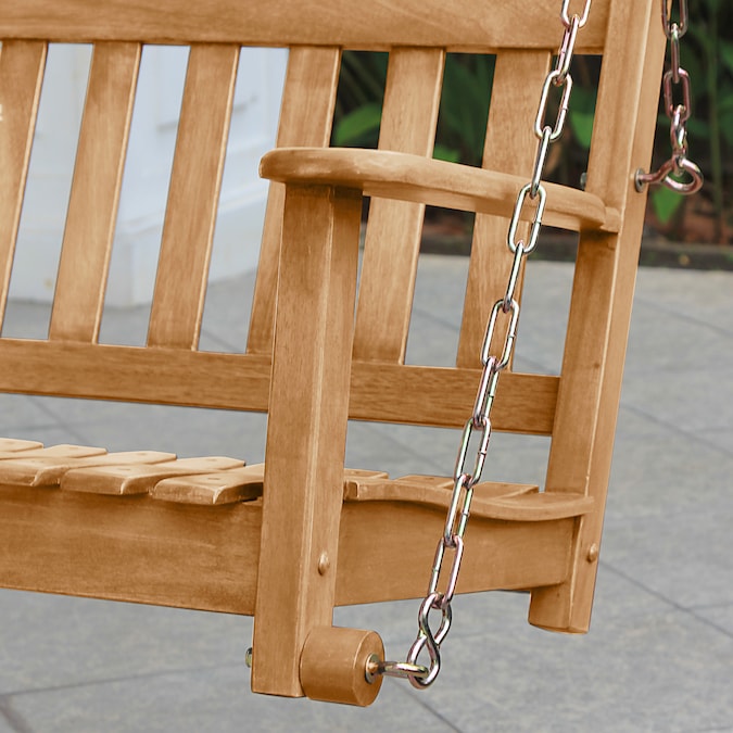 TOP 5 IMPORTANT FACTS YOU SHOULD KNOW ABOUT TEAK: Q: Why is Teak special? A: Teak exhibits remarkable durability attributed to its dense grain structure, high mineral content, and natural oils, making it highly resistant to various weather conditions. Q: How is teak sustainable? A: Utilizing wood as a sustainable material minimizes environmental impact, as it absorbs and stores carbon dioxide. Crafting furniture from teak wood results in a low carbon footprint. Additionally, our brand produces high-quality. products using superior Indonesian teak sourced from plantation-grown forests. Q: How to identify genuine teak wood? We offer genuine teak wood, not furniture with a teak finish. Authentic teak wood exhibits a lovely honey or golden brown color, showcasing a straight wood grain and few knots, enhancing its inherent beauty. Q: Why is teak furniture great for outdoor use? Teak’s natural durability against water, sun, and bugs makes it a top-notch choice for outdoor spaces like patios, decks, porch, and pool areas. It withstands various weather conditions and preserves its quality over time, ideal for those seeking lasting durability. Q: Is teak furniture easy to maintain? A: Natural teak will gracefully develop a silver-gray patina as it weathers. Teak sealer or teak oil may be applied, if you prefer to maintain the original warm honey brown. Apart from that, Clean teak furniture with warm water and mild soap, scrubbing gently along the grain. Rinse thoroughly, pat dry, and let it air-dry. The Cambridge Casual Teak Wood Porch Swing is the perfect way to bring comfort and style to your outdoor space. Made from superior Indonesian teak, this swing is durable and weather-resistant, ensuring it lasts for years. Its thick wood profile and ergonomic curved seat offer great support, making it ideal for relaxing with a loved one. The natural teak color adds warmth and charm to your backyard, while the slatted design ensures better drainage on rainy days. With a capacity for two people and the ability to hold up to 500 lbs, this classic swing is a versatile addition to any porch, patio, garden, or deck.
