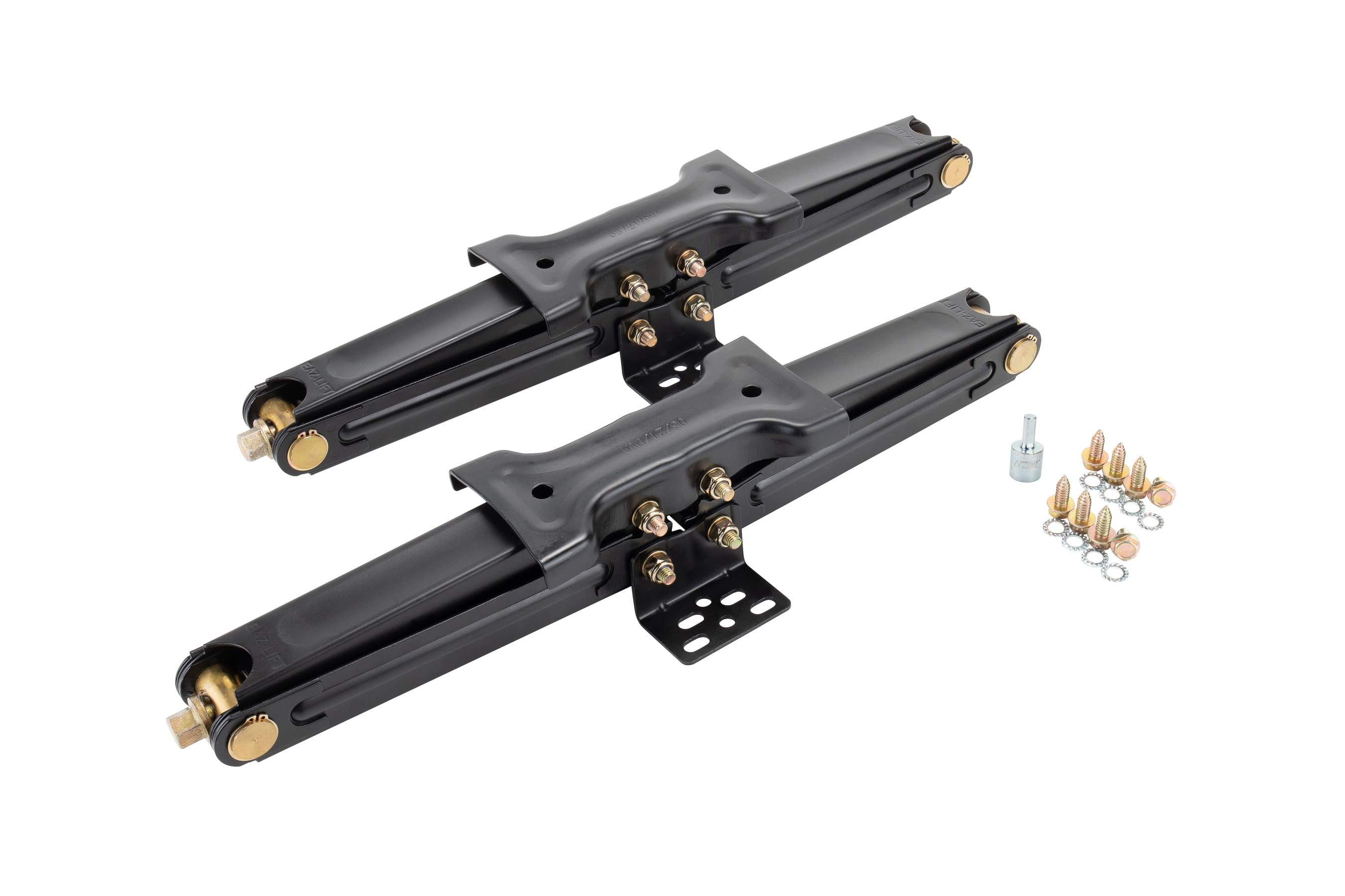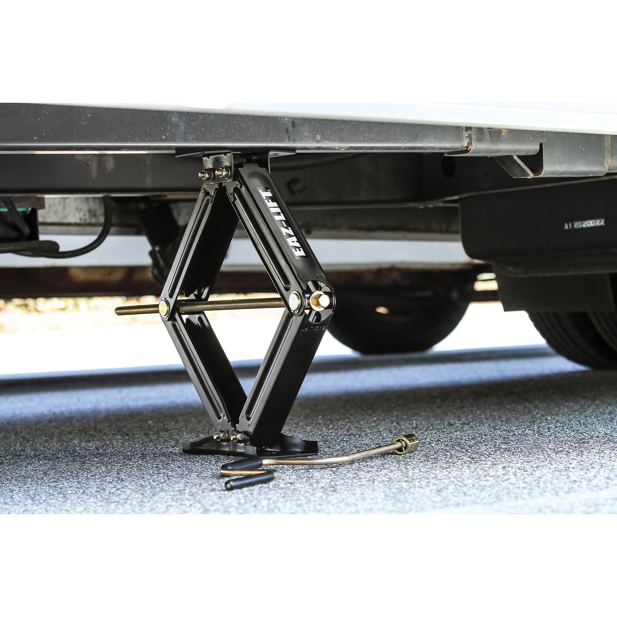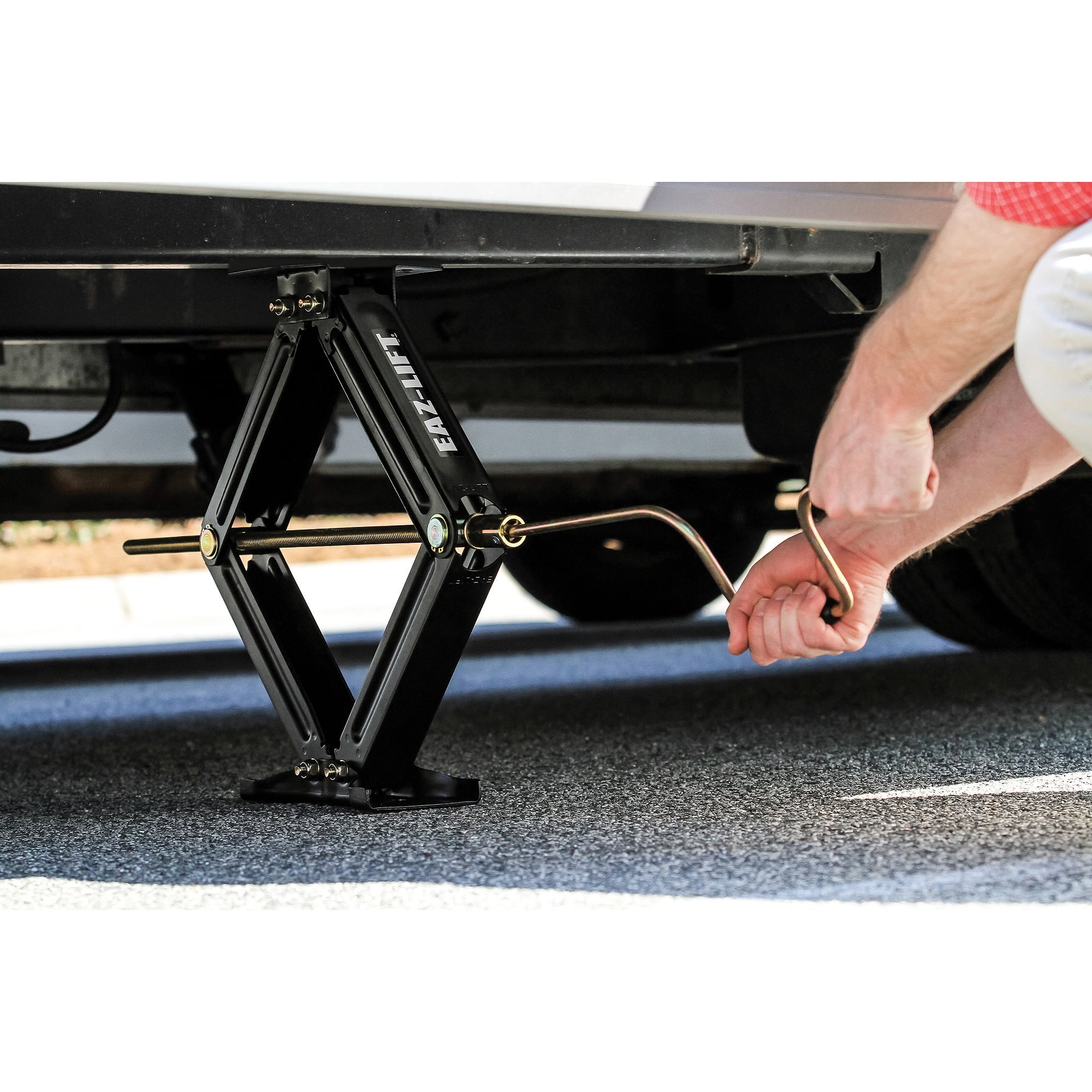 Bolt-on or weld-on installation 7500 lb. load capacity Includes two scissor jacks and one scissor jack socket for power drill Fits pop-ups and trailers Powder coated for maximum rust protection Model#: 48830; Color: Black
