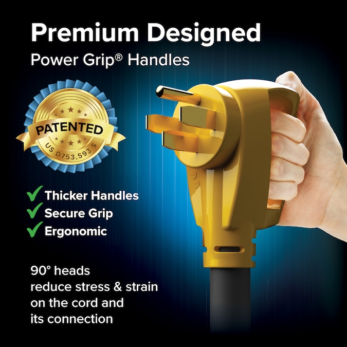 - SECURE GRIP HANDLE: Make powering up your camper easy using Power Grip handles, designed to assist users in safely and conveniently plugging and unplugging cords without strain or damage