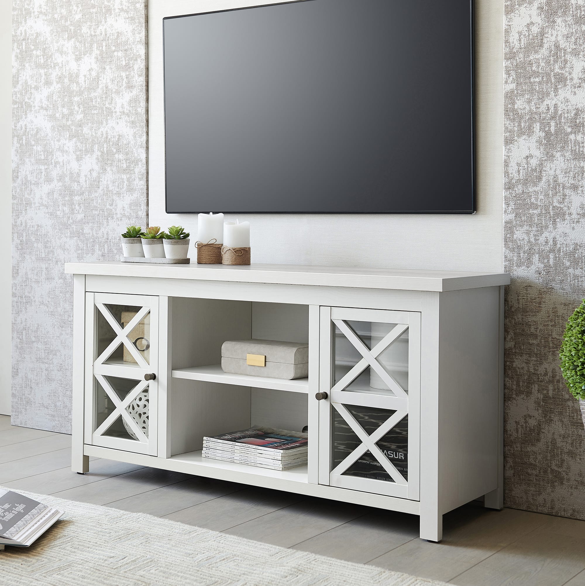 Combine functionality and on-trend design with this sturdy TV stand. Its rich wood tone creates a warm neutral palette that will blend seamlessly into any color scheme, while its crisscross-accented cabinet doors add a touch of modern farmhouse whimsy. A must-have for living areas and entertainment spaces, this TV stand sets the stage for the big game, a movie marathon, or that season finale everyone’s been talking about.