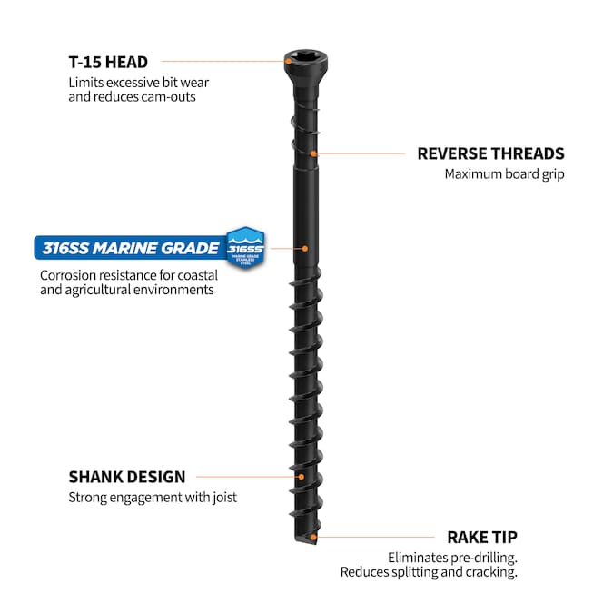 - Suitable for pressure-treated lumber, cedar, hardwood, PVC, capped composite or synthetic boards