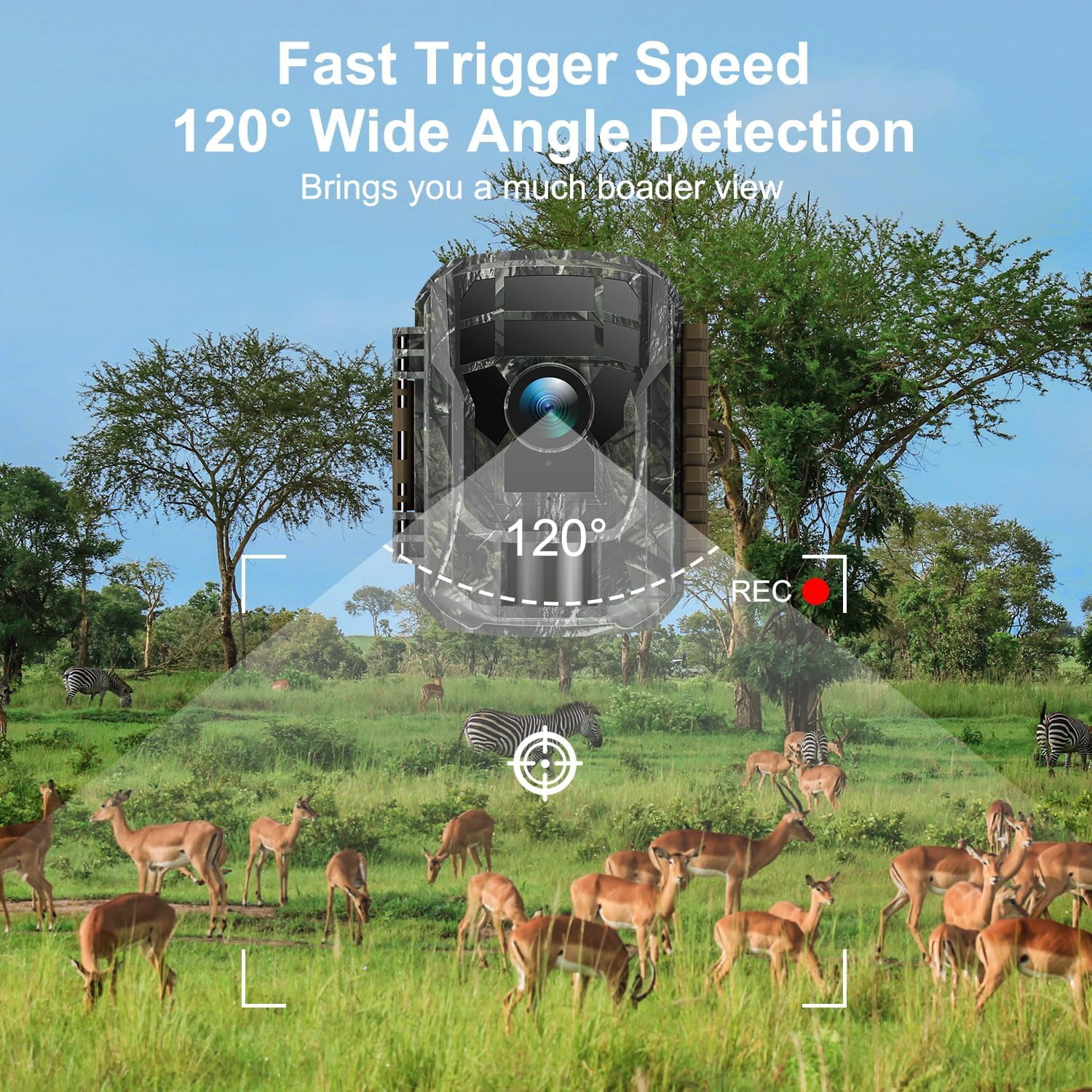 CAMPARK 2 Pack Trail Camera TC11 Features: ✅【24MP High-Resolution Photos and 1080P Videos 】 CAMPARK Upgraded hunting trail camera TC11 with 1080P 24MP resolution for stunning images in dark conditions. Night vision, waterproof, and motion tracking features. Built-in 2.0-inch TFT color screen for HD viewing. Get closer to wildlife with this camera. The game camera is only need 4AA batteries. ✅【Amazing Trigger Capture 】 Our night vision game camera is motion-activated, and once it detects movement, it snaps wildlife photos with lightning-fast speed in less than 0.1 seconds accurate captures of animals in the area. The camera’s trigger distance reaches up to 20 meters (65 feet) during the day and night. ✅【IP56 Waterproof 】 CAMPARK Hunting & trail cameras are IP56 Waterproof, designed with premium materials and technology. They excel in harsh conditions like rainforests or deserts, remaining fully functional. The trail camera is built to withstand all seasons, rain-proof, drop-proof, dust-proof, and shockproof. ✅【Outstanding Hardware 】 The trail game camera comes equipped with a 120° detection range and low-glow infrared LEDs, providing an excellent wider field of view and high motion sensor capture for wildlife monitoring. The absence of glowing infrared LEDs makes it a stealthy device, silently recording any animal movement without causing any disturbance to wildlife. ✅【Easy to Use and Setup】 You can easily use the animal tracking camera by following the user manual or instructional videos. The hunting game camera comes with a well-designed mounting bracket and mounting rope, making installation a breeze and allowing you to position the camera at the perfect angle. It’s an excellent gift for family, friends, or wildlife enthusiasts, and it’s highly versatile for wildlife monitoring, hunting, property security, gard/backyard/farm area surveillance, among other applications. CAMPARK Trail Camera Specification: Photo Resolution: 24MP; 20M; 16M Video Resolution: 1080P; 720P; 480P The Distance of Detectionn: 65FT/20M Waterproof level: IP56 Size: 70*105*40 mm What’s in the package 2x CAMPARK TC11 Trail Camera 2 x USB Cable 2 x User Manual 2 x Mounting Rope 2 x Threaded tripod chassis 2 x Threaded tripod 6 x Screws Warm Tips: SD card and batteries are Not Included in the package. SD card (Class 10 up to 128GB) is recommended ????Warranty and professional customer service: We have 30 day free return money-back and 12 months warranty. If you have any problem, please don’t hesitate to contact us. We will handle it within working days 24 hours