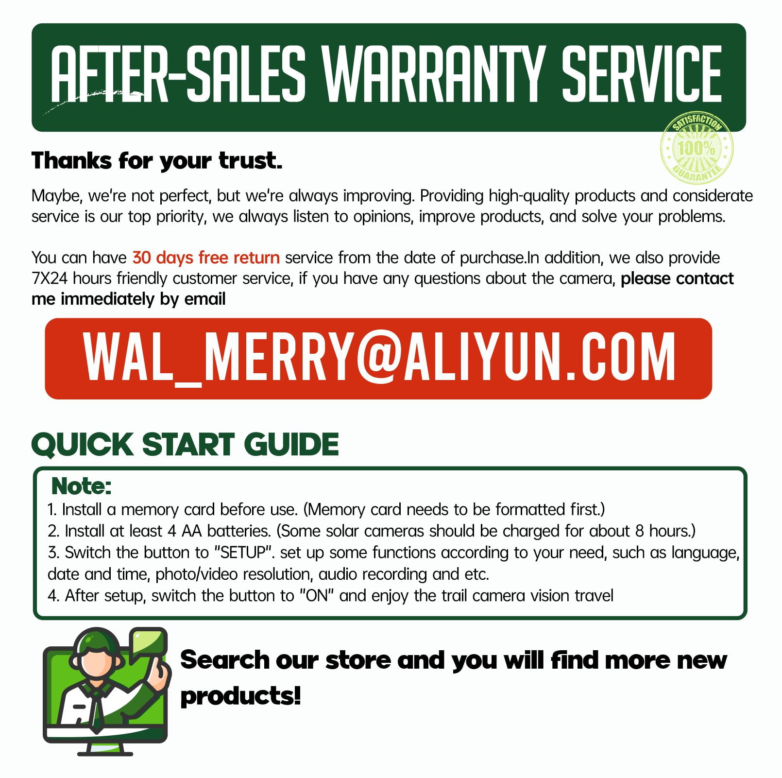 We have developed several series of hunting cameras to provide customers with more advanced technology to capture every wonderful moment. CAMPARK as a professional developer of hunting cameras, we have always been committed to outdoor camera video. CAMPARK Provide cost-effective products 4G Cellular Trail Camera, Solar Trail Camera, Wi-Fi Bluetooth Hunting Camera, Infrared Game Camera, Wildlife Trail Cam, Deer Camera, House Security Monitoring, Farm Security Monitoring, Garden Security Monitoring, Surveillance Camera. Also, if you have any problems with CAMPARK product, please feel free to contact us. Our professional after-sale service will reply to questions within 24 hours. [email protected] 2 Pack Trail Camera 24MP 1080P HD Game Deer Hunting Camera with Infrared Night Vision Motion Activated Waterproof IP56 120° Wide Angel 2.0″ LCD Wildlife Monitoring Trail Cam for Home Security