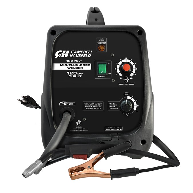 The Campbell Hausfeld 120 Amp output, wire feed, MIG/flux core welder (DW313000) is great for welding projects around the house and shop. Select from four heat settings to match metal thicknesses up to 3/16 inch. Thermal overload protection activates automatically to avoid overheating. Infinite wire speed control allows exact adjustments for a smooth, even weld bead. The gun is equipped with trigger-activated arc for easy starting. Includes a starter spool of flux-cored wire, and 2 extra contact tips. This unit comes with flux core wire so gas is not needed to weld with this unit. No gas comes with the unit. However, it is designed so it can be converted to use gas when flux core wire is not wanted. It can be used with 100% argon, 100% carbon dioxide, or 75% argon and 25% carbon dioxide.